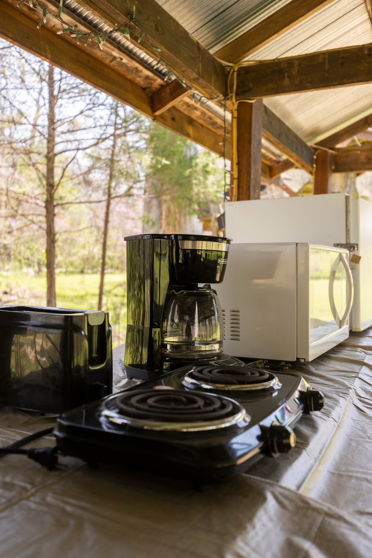 Peaceful retreat to unplug and unwind. This off‑the‑grid experience has no electricity or flushing toilets, we do provide the essentials: running hot water, an outhouse, and propane lighting. Stay includes access to a handcrafted, wood‑fired hot. (Tub is still under construction. Landscaping and some final details are not finished.) Four-wheel-drive, or high-profile two-wheel drive vehicles are needed to get to the cabin. We must greet guests at arrival to show you how to use the propane lights.
