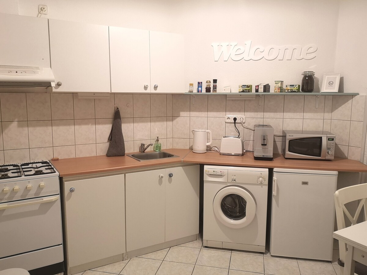 Welcome to my place,a comfortable little spot to call home while you visit Budapest!It has everything you need and is centrally located on a beautiful street in the heart of the city.FREE PARKING for guests 150 m from the apartment.The apartment is located directly below the Castle on the Buda side,Buda Castle 500m 10min🚶🏽, Sikló 650m 8 min🚶🏽,Chain Bridge 850m 10min🚶🏽,Elisabeth Square 🎡 1,9km 15-20min🚶🏽,Liszt Ferenc Airport 22km 33min🚗.Supermarket 150m 3min🚶🏽,Bakery 20m 1min🚶🏽,Rudas Bath 1,5km 20min🚶🏽