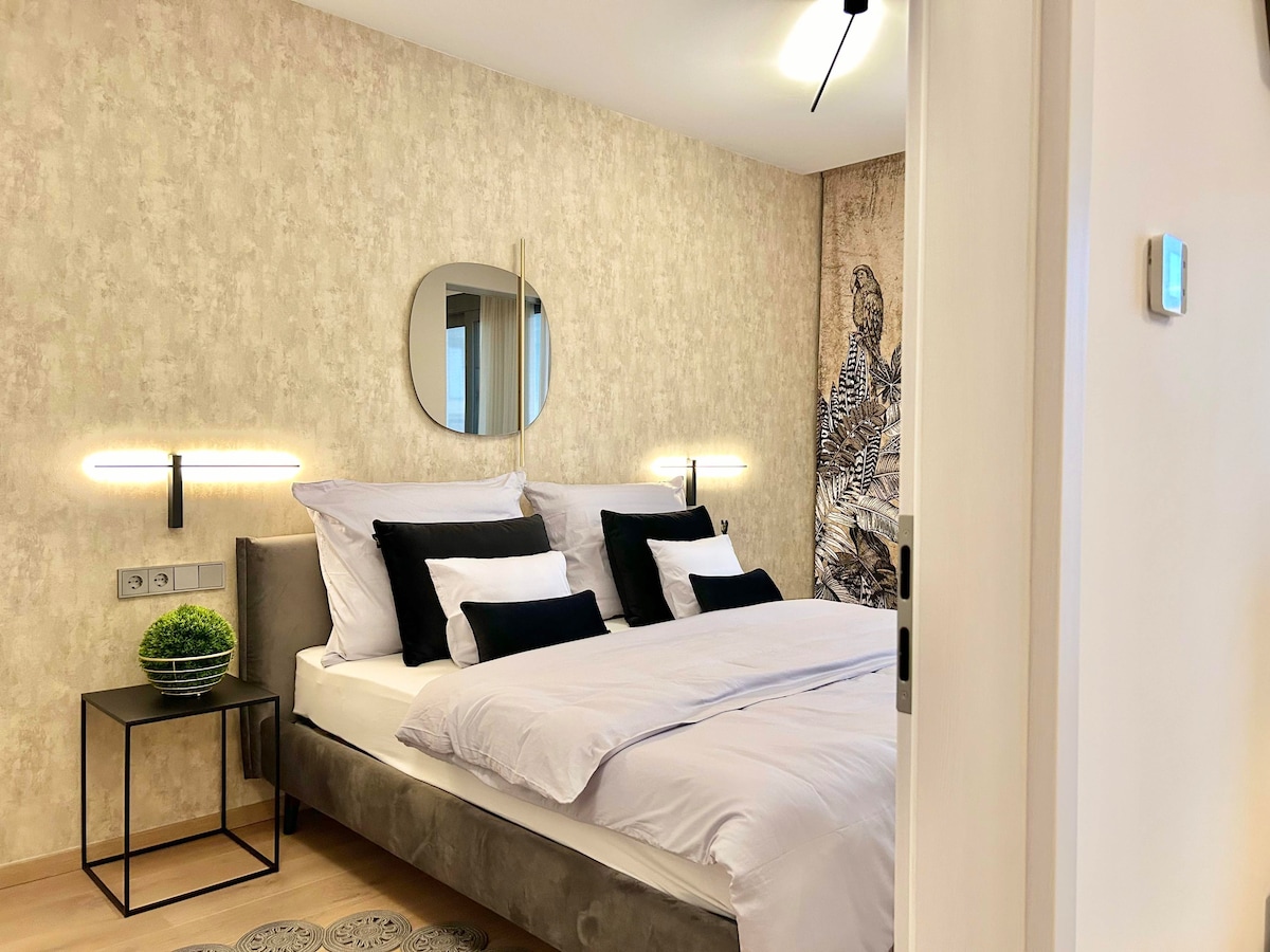 Newly built apartment in the old Piatnik card factory, in the 7. district. The building is located in the inner courtyard of the Metropolitan University, so it can be said to be quiet despite its central location. It is a frequented environment, next to the Keleti Railway Station, metro-, bus-, trolley-, tram stations 2-5 minutes. The party district and the City Park are very close on foot. There are also common areas in the building, such as a gym and laundry. Equipped with air-condition.