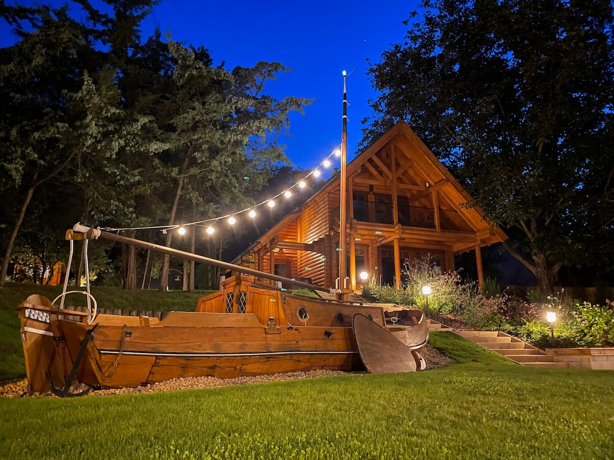 Zsíroshegyi Vendégház II- New luxurious wooden cottage in a huge private garden, perfect for relaxation! On the ground floor: living room with open kitchen, dining table and a sofa which opens into a double bed. The bathroom is also on this floor with a shower and a washing machine. The bedroom with a double bed is on the first floor. There is a (gas) fireplace, an air-conditioning and floor heating in the house. Tourist tax: 300 HUF/day/person (must be payed upon arrival)