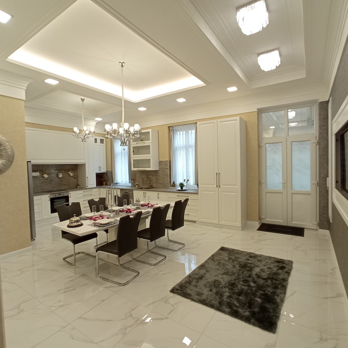 Charming and amazing 135 m2 apartment fully renovated . It's situated in historical center in 5 min from Parliment and Danube,has high ceilings, balcony and wi-fi.Two full suits with private showers and kitchens give you opportunity to have your privacy even if you are traveling with company.