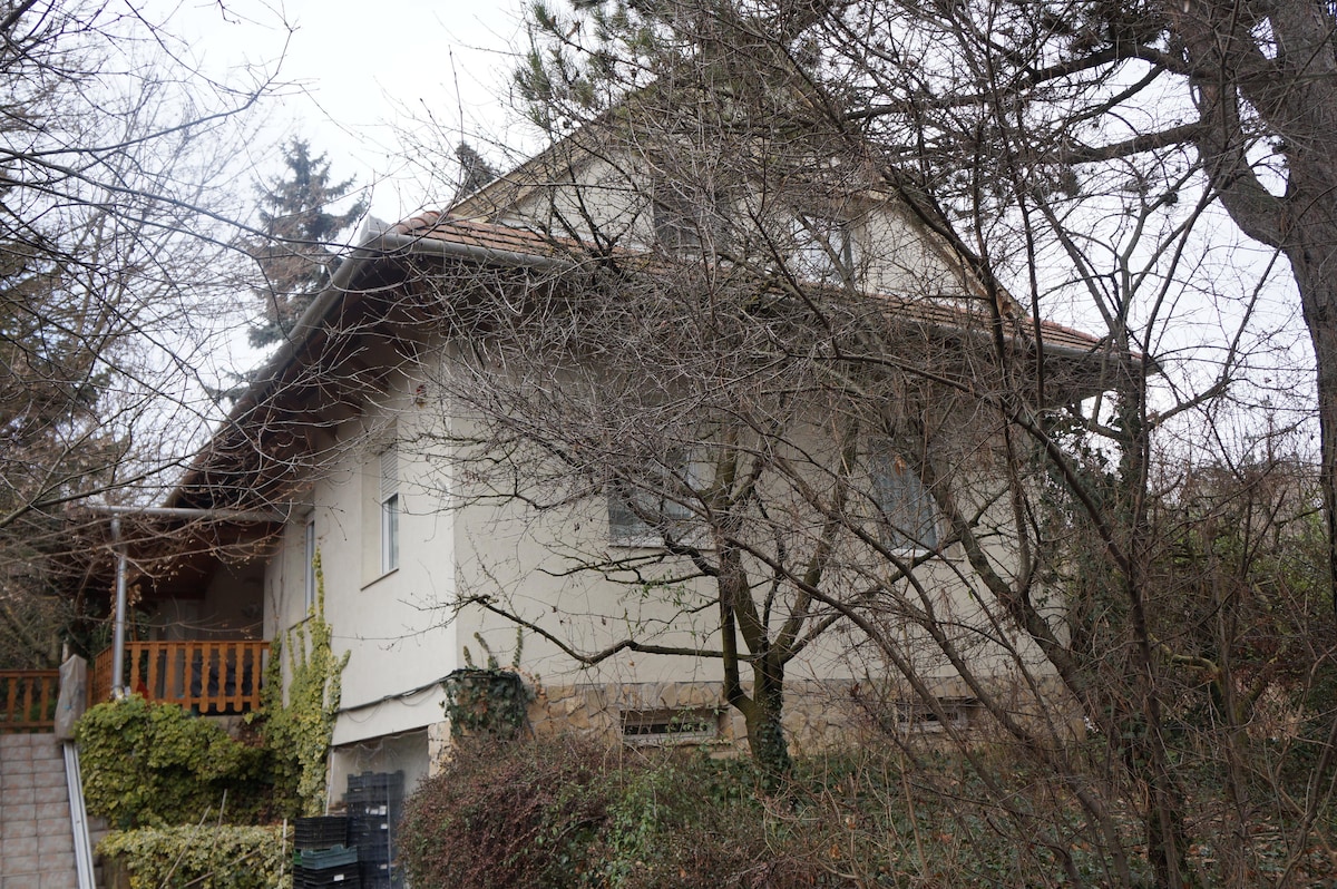 Our environmentally friendly family house close to Budapest, with 3 bedrooms awaits our guests who love excursions and wish to have a quiet, peaceful holiday. The whole family will have fun in this grassy garden with its huge walnut trees and leanders. We have solar power all year round, use biodegradable, eco-friendly cleaning products, collect rubbish and encourage our guests to do the same :)