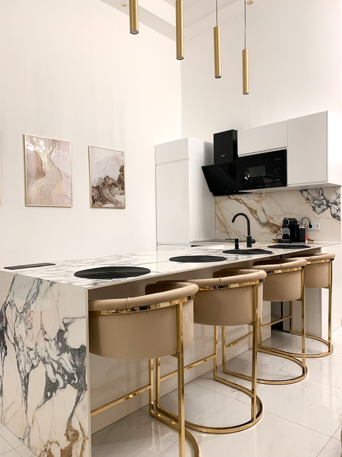 Luxury in the heart of Budapest, equipped with well known designer furniture and first class interior material. This 150 m² stunning apartment with an amazing view of the Budapest Eye is a masterpiese of interior design. The apartment is one step away from delicious Restaurants, Bars, and Budapester Night Life. The Apartment is fully restorated and upgraded in a most modern way and equipped with a 86'' TV and Sonos 7,1 Sourround System, allows a very simple connectivity to Tablets and Phones.