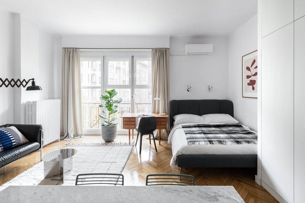This romantic flat with vintage charm is located in district 5, the most historical district of Budapest, famous for its beautiful sightseeing, great restaurants and ruin pubs. St. Stephen's Basilica is right around the corner. We’re not just in the city center, we’re in the heart of it. Perfect location, fun place to stay. Facing an inner garden, this flat also provides you a peaceful space and a good night’s sleep. It’s a perfect base for couples and friends to explore the city.