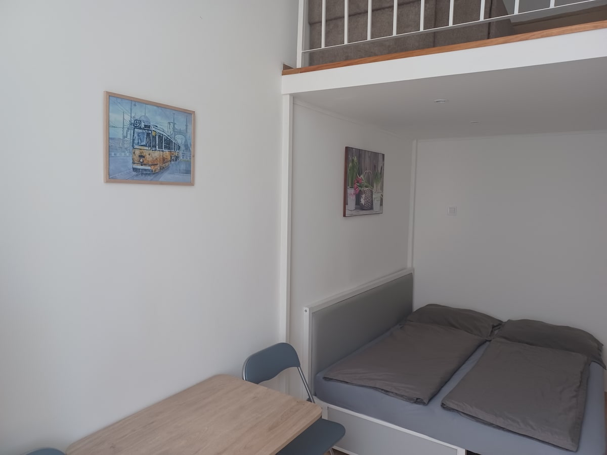 The upstairs room is comfortable, modernly furnished, with a private bathroom, perfect for relaxing. Comfortable for 2 people. The guesthouse, located near Budapest Liszt Ferenc Airport, provides free parking in the courtyard, making it an ideal choice for those arriving by car. Guests can arrive 24 hours a day, 7 days a week, with 24-hour self-check-in for greater flexibility. Free Wi-Fi is also available in the room, making your stay even more comfortable.