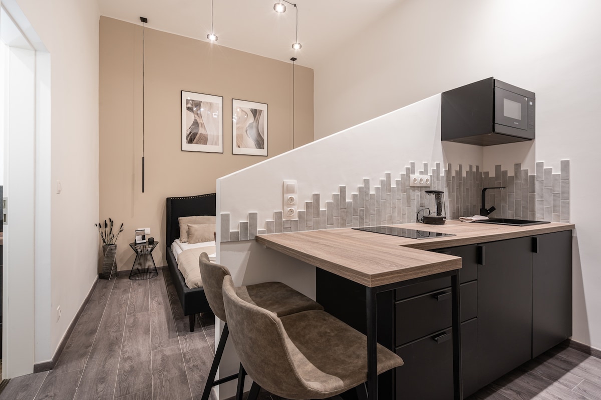 布达中心现代单间公寓,自助入住和快速无线网络