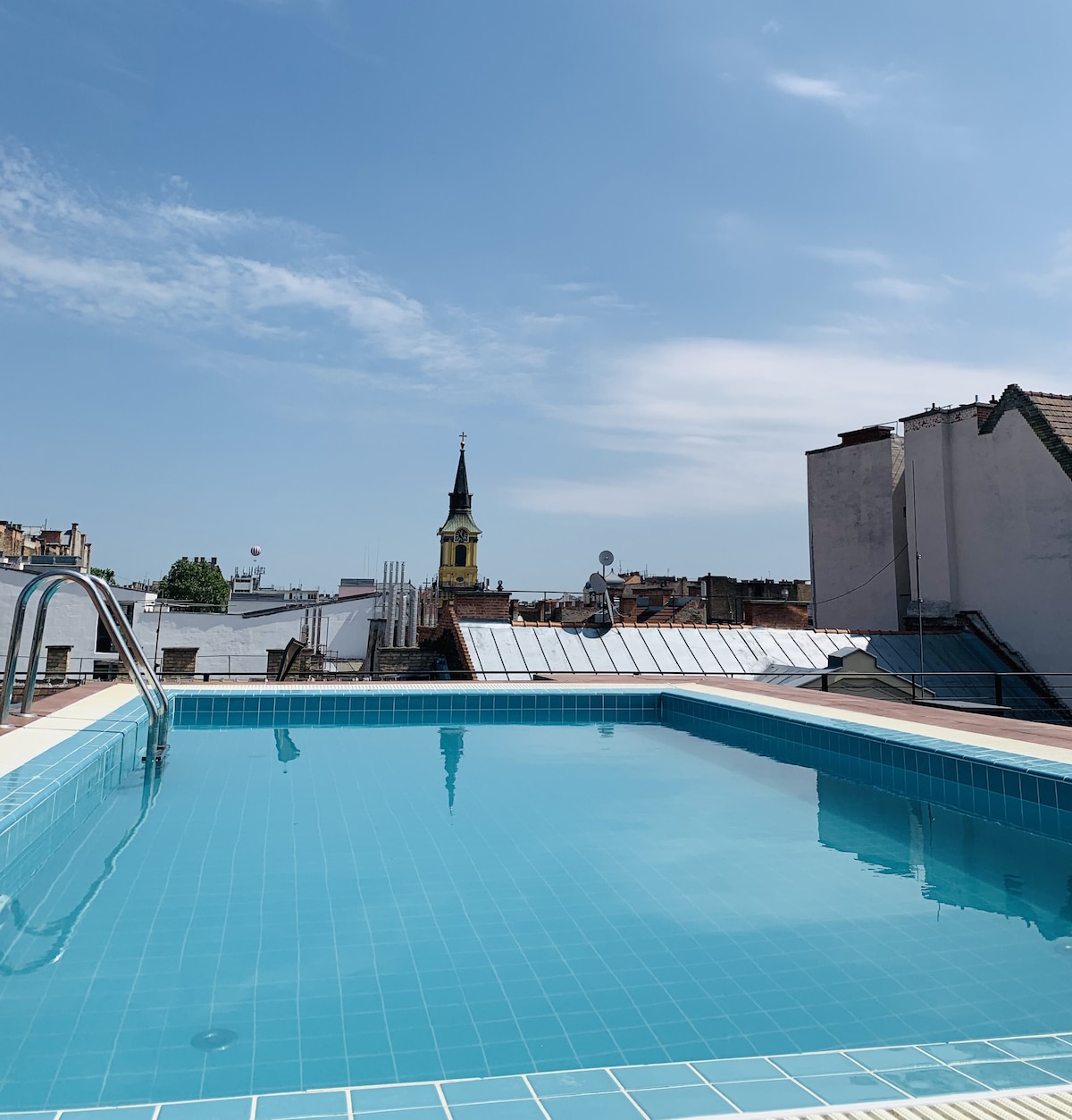 In the heart of the city, in Király Street, a brand new stylish apartment with an elevator, and a balcony overlooking the inner garden. The apartment has a modern kitchen, and a comfortable bathroom. Air conditioning and a safe are also available to guests. The apartment is equipped, smart TV and Netflix enhance the experience. The special feature of the house is that there is a pool on the roof, from which you can see a wonderful panorama of Budapest while cooling off. We provide a free garage.