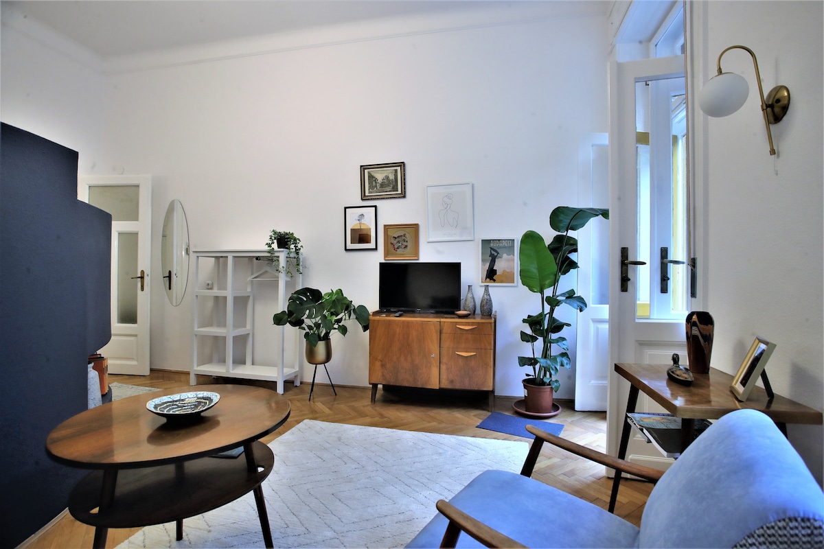 A bit of Paris in Budapest. This is what I feel about my studio. It is located near the city centre, at the top floor of an art deco building, with a view on rooftops. As an artist, I wanted to create an interior with pleasant color harmonies. In spite of it’s size, the flat feels quite spacious. Budapest’s main entertaining area is 15-30 minutes away. You can go by foot or by the nearby main tramline. This cosy place is perfect to relax after a busy day full of sightseeing and adventure.