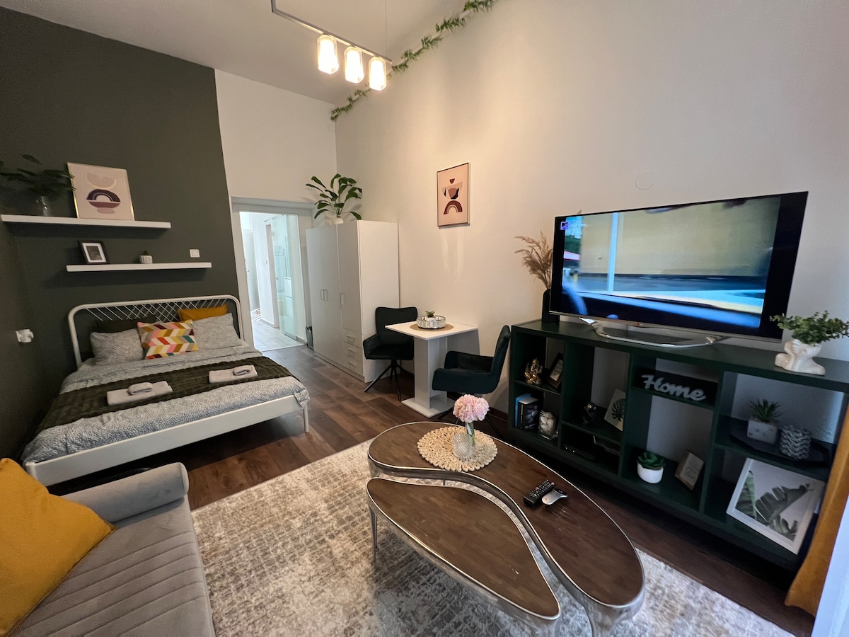 Welcome to this newly built, cozy apartment at great central location! The place is a perfect choice for couples or families up to 3 guests. This one-room apartment is fully equipped and has everything you need for a relaxing stay. We offer our guests free parking in the garage of the building. Despite the quietness of the street, it is a vivid neighbourhood near the Heroes' Square and many other attractions.