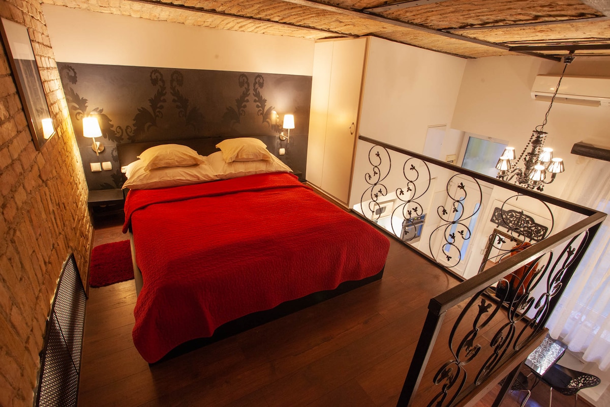Trendy split level 1 bed flat in the heart of Budapest. The flat is in a historical building with high ceilings and period features. Perfectly located, with both Heroes square and the trendy center of Pest close by. Numerous cafe’s, restaurants and shopping opportunities are within a short stroll. It is seconds away from the famous Andrassy Boulevard that links Erzsébet Square with Városliget and was recognised as a World Heritage Site in 2002.