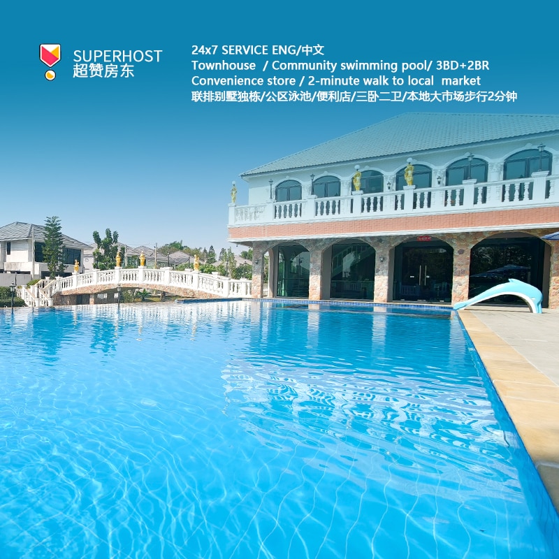 芭提雅独栋联排别墅三卧二卫/泳池/沙滩5分钟车程/近游艇码头 /步行2分钟本地大市场50