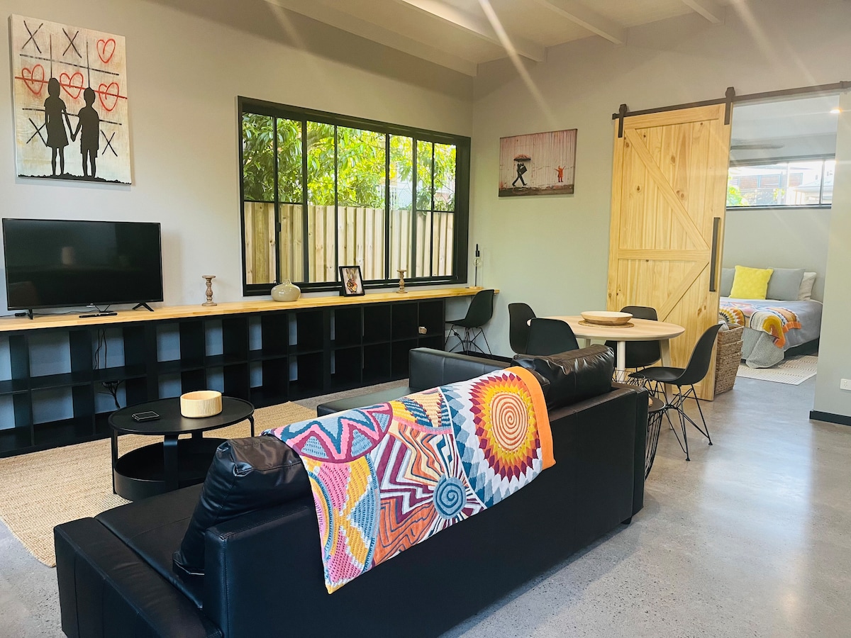 Enjoy an unforgettable stay in our self contained studio, listening to the ocean as you fall asleep! Catch a beautiful beach sunrise on your morning walk, only 5 mins away, or for the best sunset & views head up to La Balsa Park/Point Cartwright. Outside your doorstep, all Buddina has to offer is only minutes away with Beaches, Parks, BBQ's, Shops, Cinemas, Restaurants and Cafes. Enjoy your own private space to chill out and unwind with Indoor-Outdoor living surrounded by grassy lawn.