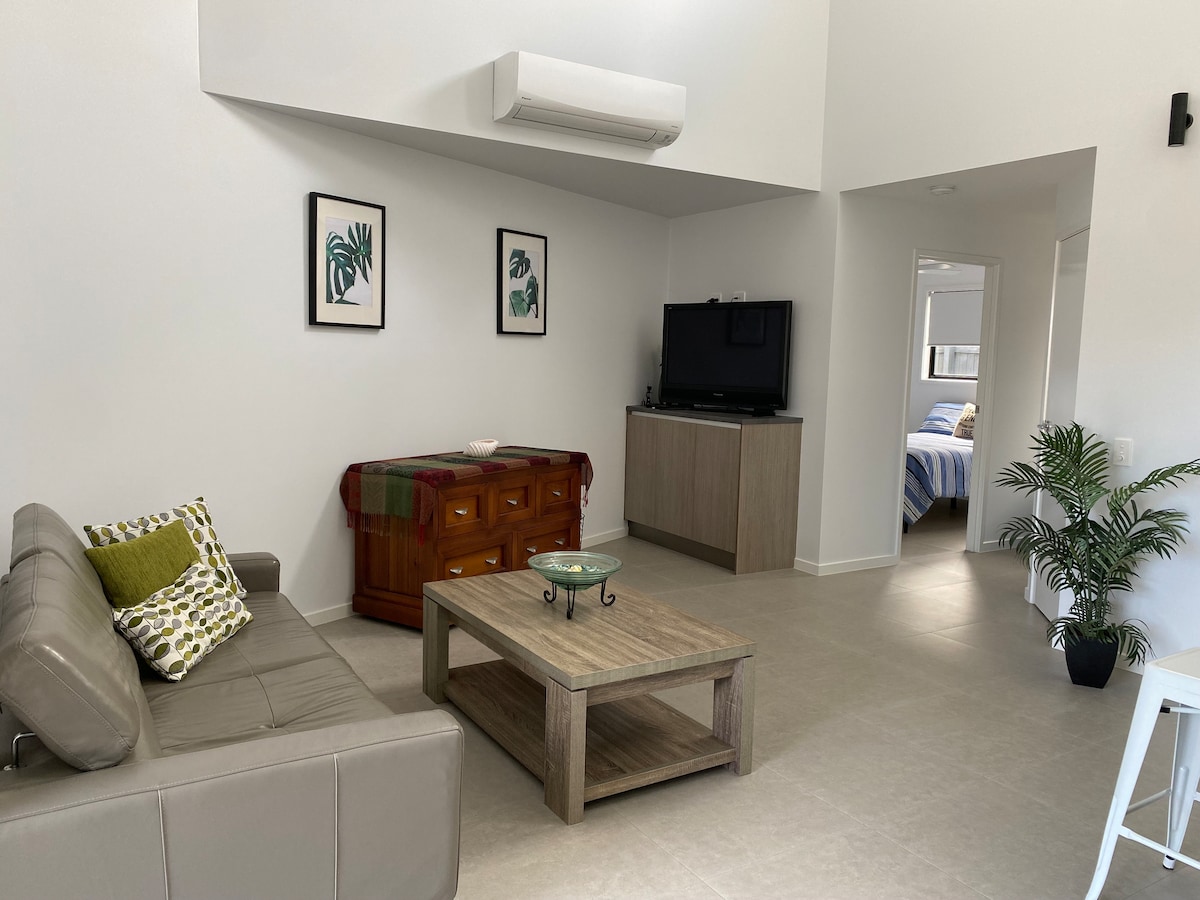 Relax in our private air conditioned guest studio, perfect for singles and couples looking for a coastal get away. The studio has a separate entry and complete privacy. It is fully self-contained and is modern, bright, and airy. The space also includes your own private deck with views to the glasshouse mountains. The studio has high speed WiFi and smart TV with access to any of your apps. It has a Nespresso coffee machine, breakfast facilities and access to a shared swimming pool.