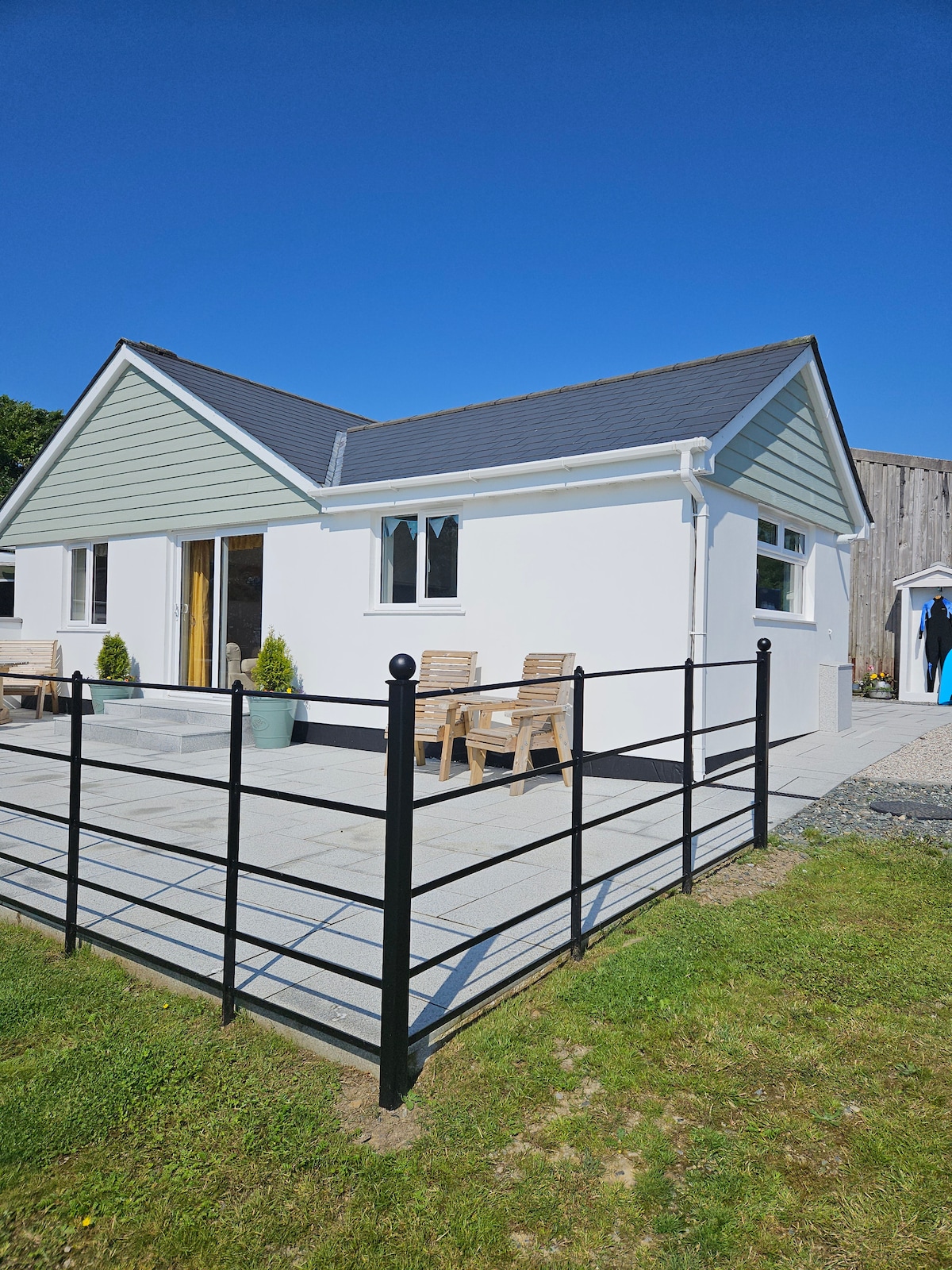 The Lugger is a stunning property completed in 2023. Situated up a private bumpy lane, once through the gates you will be free from the hustle and bustle and a lovely quiet space awaits you with off road parking and a sunny patio. It is located at the bottom of our garden, but has separate pedestrian and vehicular access. Only a 5 minute walk into Wadebridge and Camel Trail, the town boasts some lovely independent shops, restaurants, bars and bike hire.