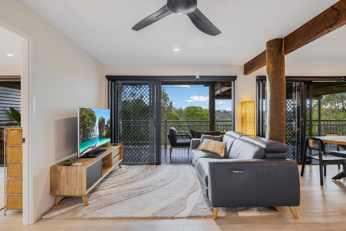 Discover the award-winning La Casita, a luxury bush retreat on the Sunshine Coast featuring two king-sized bedrooms, a stunning bathroom with a glass roof and starlit floor, an outdoor fire pit, a spa, and a sauna. Modern Queenslander aesthetics and privacy-focused design and landscaping make it the perfect escape near the coast's beaches, rainforests, golf courses, and hinterland. Book now and experience the ultimate luxury retreat, complete with two highland cows.