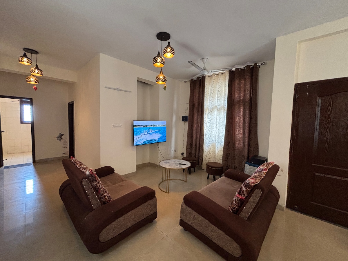 Welcome to our modern and relaxing 2-bhk apartment, perfect for couples or friends, Enjoy a comfortable stay with cozy bedrooms, a spacious living hall with TV for movie nights, and a fully equipped modern kitchen for home-cooked meals. Step out onto the large private balcony featuring a charming couple swing — the perfect spot to unwind, sip coffee, Whether you’re here to chill with friends or spend quality time with loved ones, this apartment offers the perfect blend of comfort and good vibes.