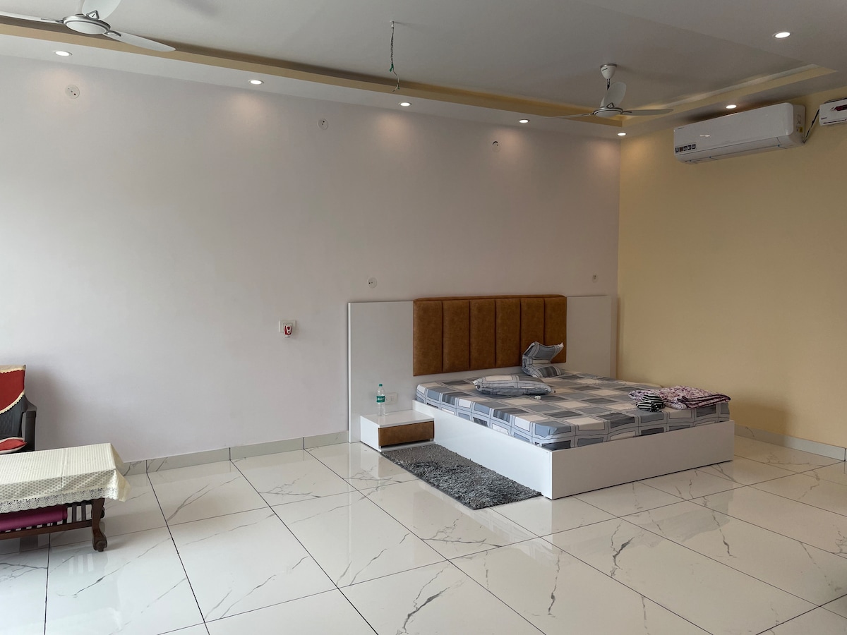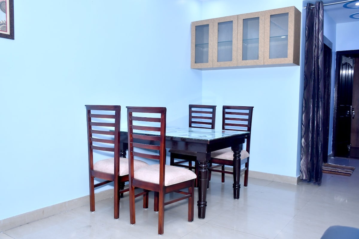 Welcome to The Friendly Place! Enjoy privacy in this cozy 2BHK apartment with a luxurious king-size mattress on the floor for ultimate comfort, relax on the spacious 7-seater sofa, also offer a workspace with a big table and boss chair and cook in the fully equipped kitchen stocked with dry and fresh rations. we provide delicious home-cooked meals for an extra fee! No loud music after 8 PM. Convenient delivery from Swiggy and Big Basket, pickup and drop-off within 5-7 km incase you require!