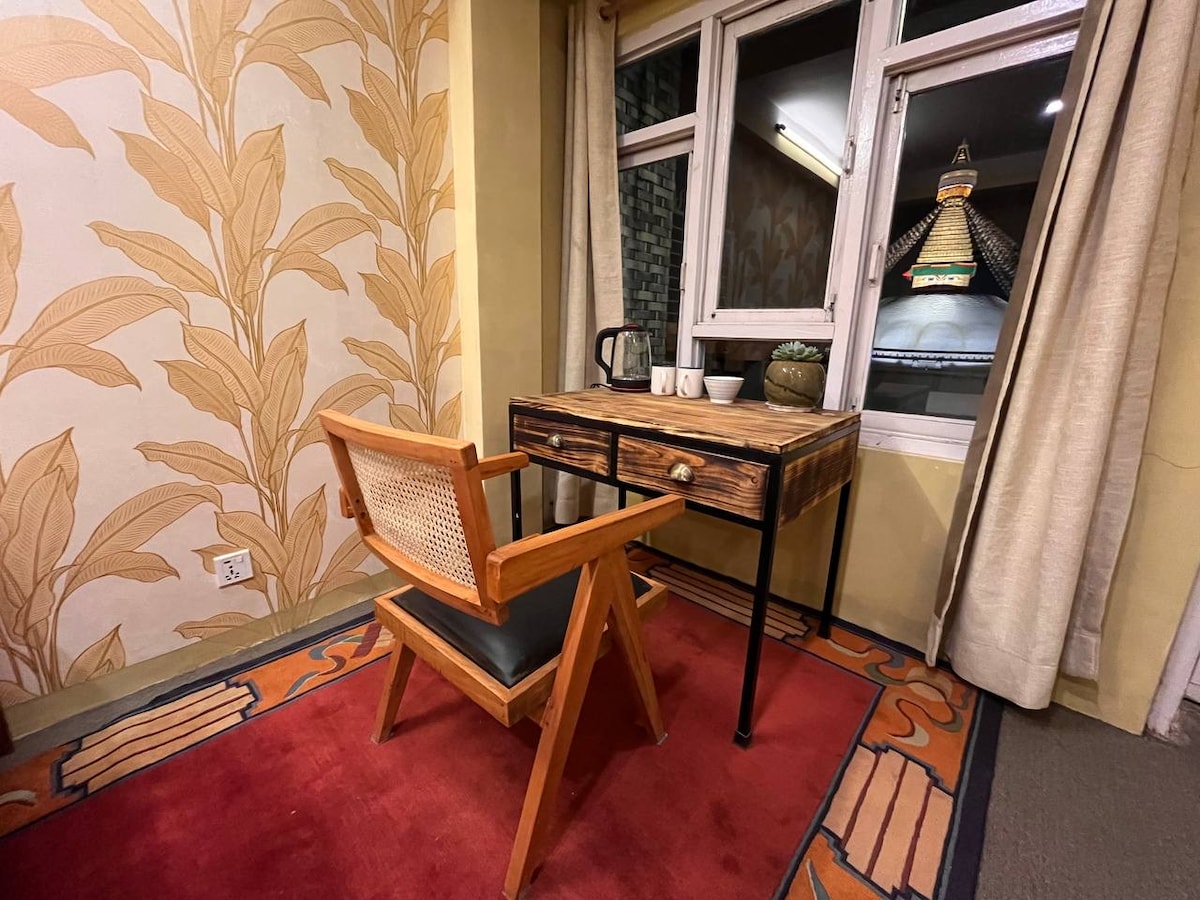 Experience a serene 1 BHK suite just 1.3km from Boudha Stupa and 6.1 km from Airport, blending Nepali And Tibetan art and culture with modern comfort. Unwind in the cozy living area or step out on the terrace with stunning views of Buddha Stupa, Various monasteries, the airport runway, and the surrounding hills. Whether you’re here for a quiet retreat, a spiritual journey, or simply to experience authentic Nepali living, Shama suites offer a peaceful sanctuary with refreshing contemporary.