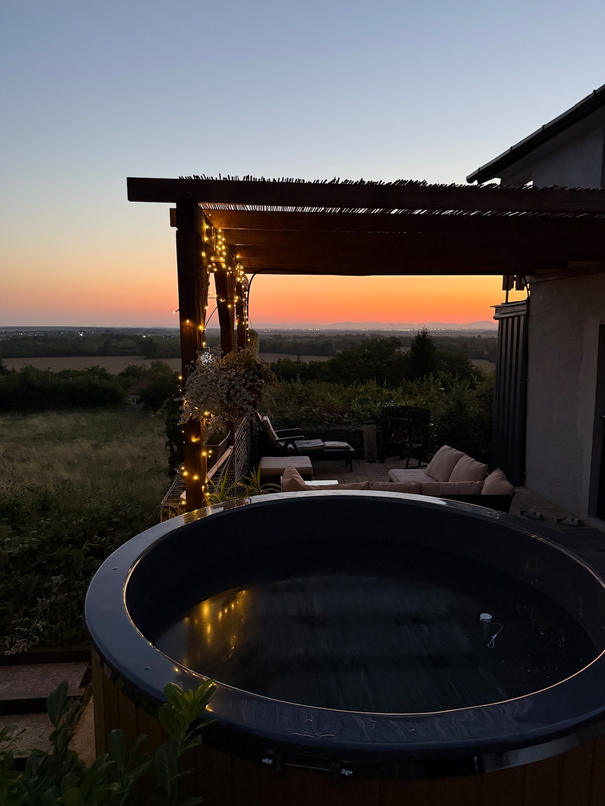 Relax in a cozy and romantic tiny house under the vineyards with stunning views of the Little Carpathians. Enjoy autumn sunsets, peaceful mornings, or a calm home office surrounded by nature. In the evening, warm up in the hot tub under the open sky. The hot tub is included for stays of 2+ nights. For 1-night stays, the fee is €25.