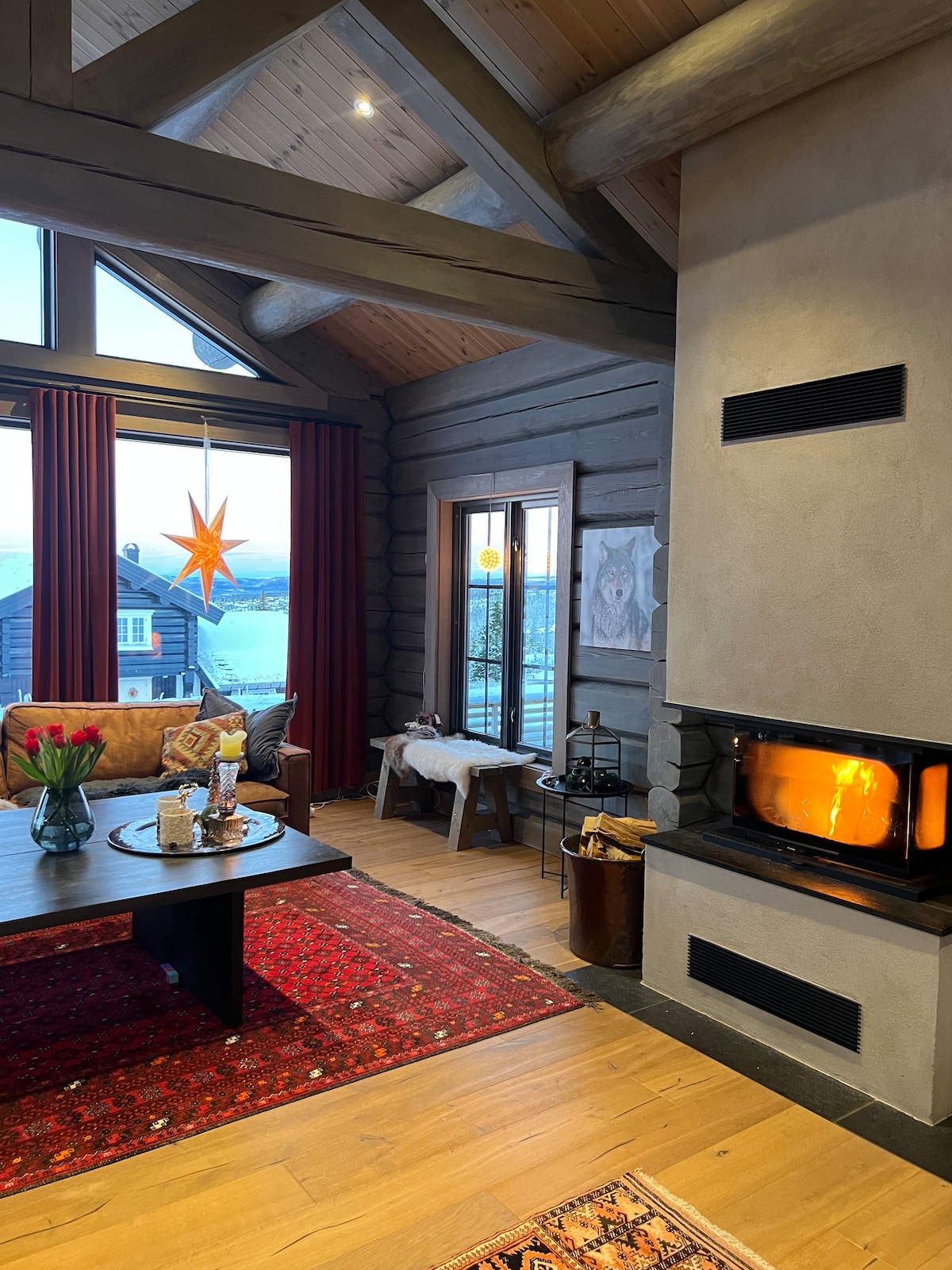 Velkommen til vår koselige, moderne hytte på Budor. Hytta er 120 kvm og har en romslig planløsning. Stua inviterer naturen inn med store vindusflater. Her er det ingenting som hindrer utsikten og skiløypene er rett utenfor døra. Hytta har 4 soverom med plass til 9 personer, kosekrok for barn og arbeidsplass for voksne. Vi tror på å koble av og nyte tiden sammen, så her finner du masse brettspill, perling og lego. I tillegg har vi TV.