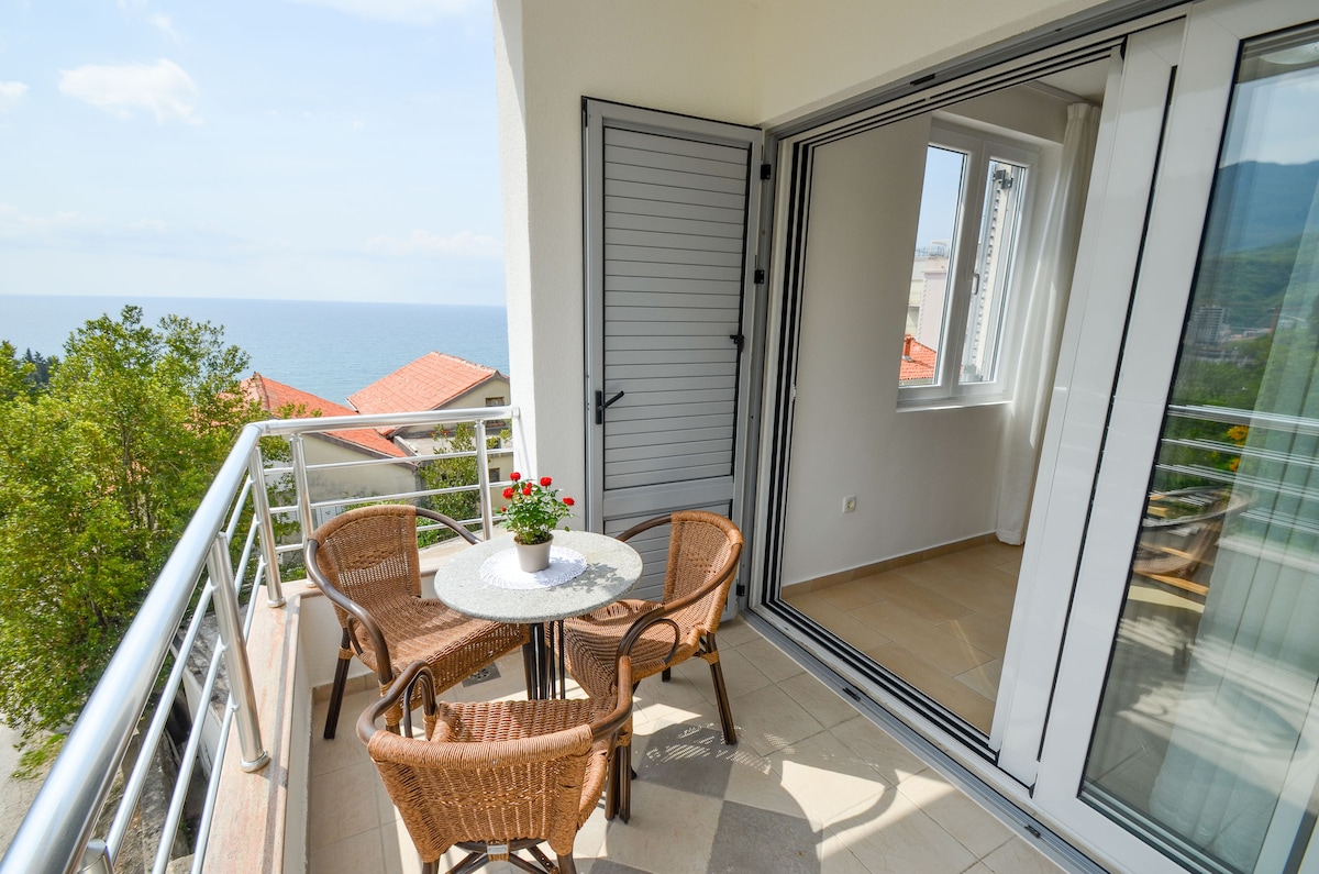 Аппартаменты Комфортные, уютные,с современным ремонтом и шикарным видом на горы и город рады своим гостям! Для Вашего комфортного отдыха есть 6 спальных мест:2 кровати и диван кровать.На кухне вся необходимая техника: кофемашина для зернового кофе,духовка ,микроволновка ,чайник,высокоскоростной интернет, кондиционеры и рольставни в каждой комнате.2 террасы с видом на горы и город Будва,2 тв Smart и от Wi Fi,2 полноценных санузла и стиральная машина.