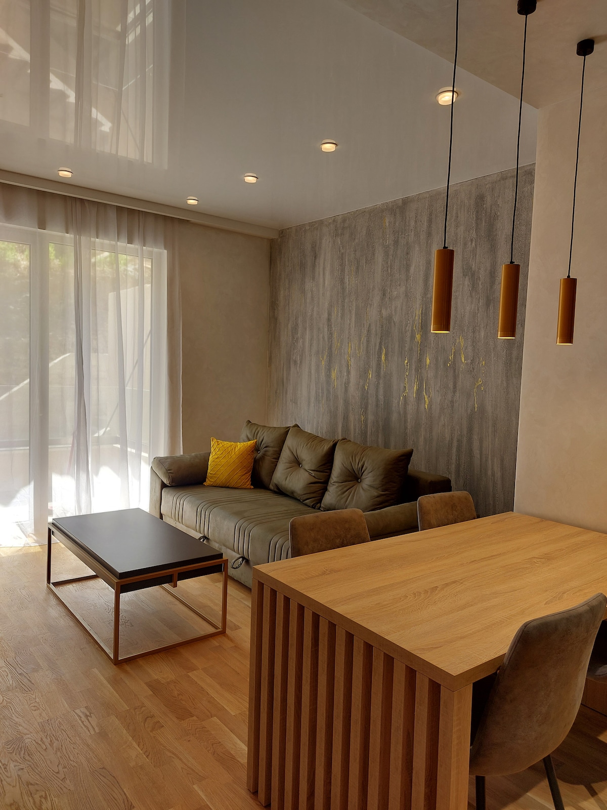 Modern 2-bedroom apartment in the heart of the city, right on the main seaside promenade. Enjoy a spacious living room, stylish design, full amenities, and free parking on premises. Everything is within walking distance - shops, cafes, beaches, and nightlife. Perfect for families, friends, or business travelers seeking comfort, convenience, and an unbeatable location.
