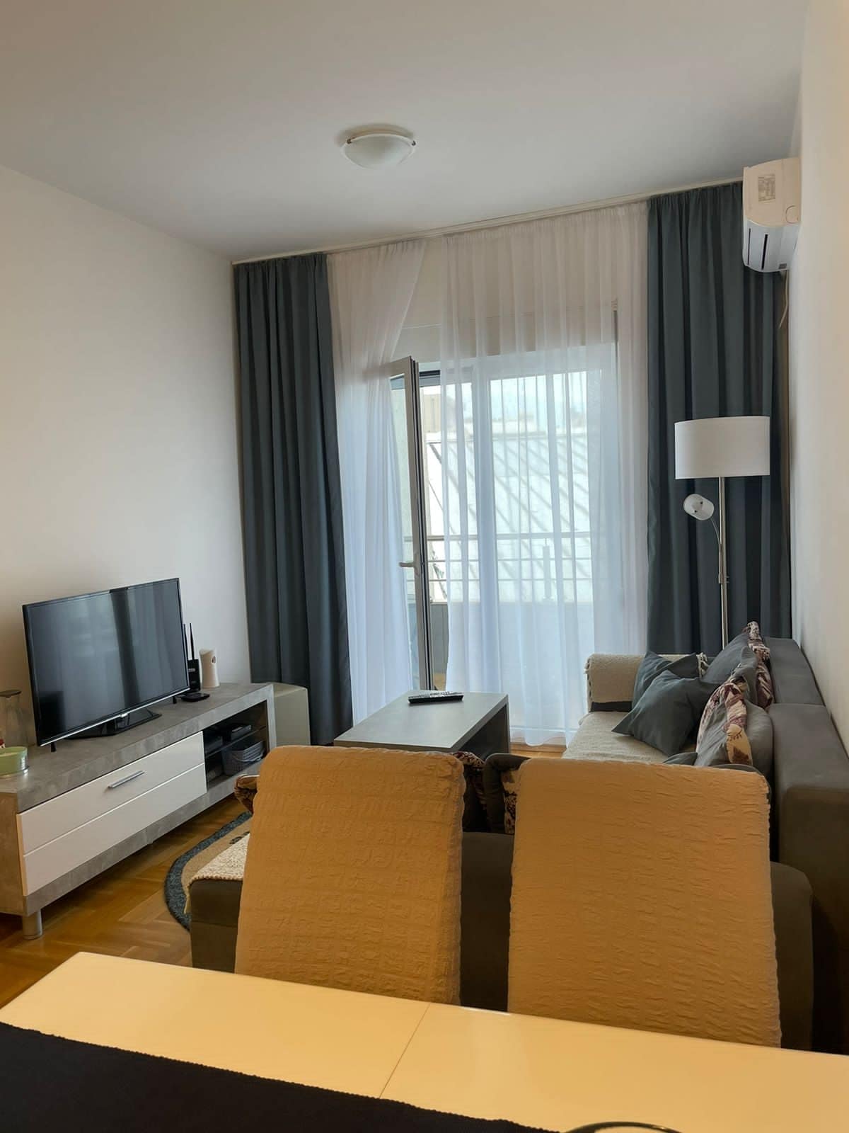 The most beautiful place you will enjoy on Adriatic Sea. Spacious 2 bedroom 1 bath condo in a calm area of municipality of Budva. Amazing floor space rarely found in Montenegro. Sea views from every room, sea breeze and gorgeous sunsets. Short walk to the beach. Sunny and bright with A/C in every room. Secure complex with on-site security cameras. Stay right next to the one of the most famous beaches in Montenegro. This is one of the most luxurious find with garage spot included for your stay.