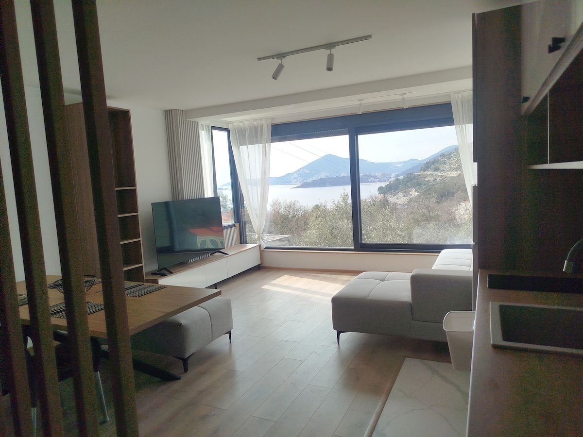Herzlich willkommen liebe Reisende! Und willkommen in dieser gemütlichen und zugleich luxuriösen Wohnung im beliebten Urlaubsort Budva, direkt an der Adria. Ihr übernachtet in diesem neu erbauten Komplex, welches Luxus und mediterranes, einheimisches Flair verspricht. Setzt euch auf die Terasse und genießt den wundervollen Blick auf das Meer, wo ihr eines der beliebtesten Wahrzeichen Montenegros seht - die Insel Svt.Stephan. Ihr werdet es lieben...