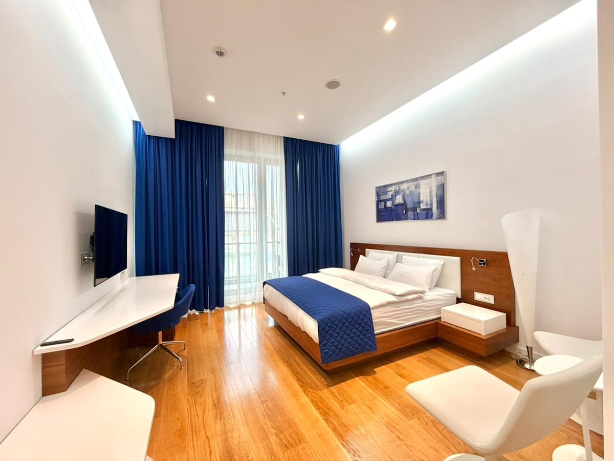 Luxury Condo Studio Plaza is located in the city center, within the shopping center TQ Plaza. Studio apartment is 40 m2 in size and is designed for two people. Condo Studio Plaza is only one min away from the beach and 3 min away by walk from the Old Town. The apartment consists of an entrance hall, kitchen, bedroom with work desk, king size bed and a large terrace overlooking the city.