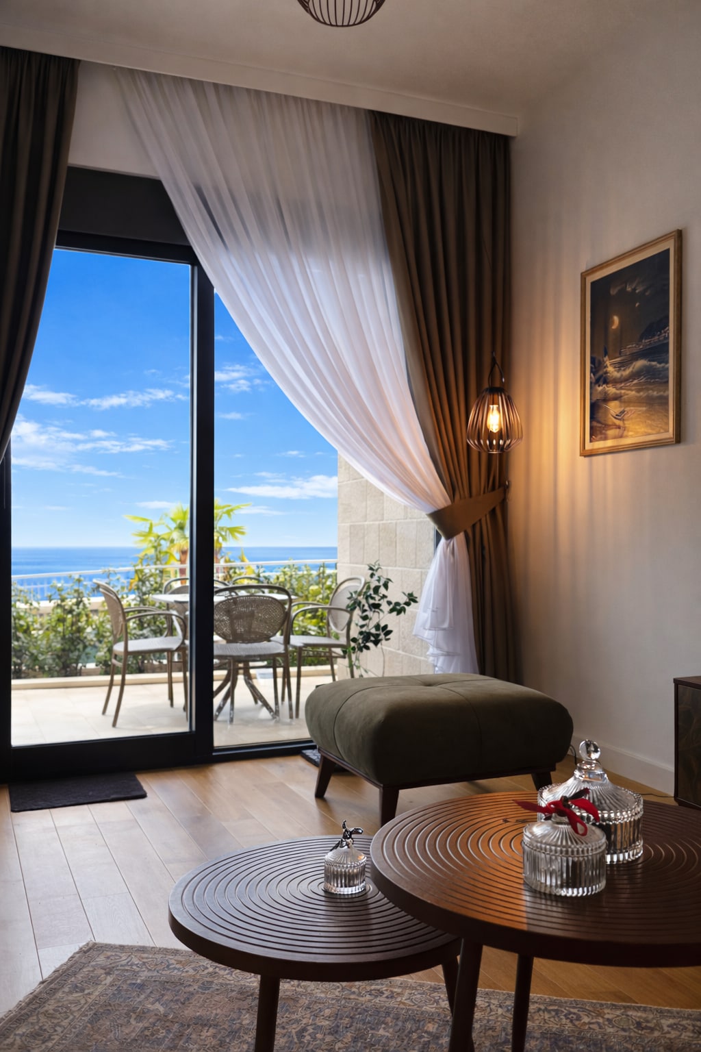 Welcome to our brand-new luxury apartment in a peaceful gated residence in Petrovac, featuring panoramic sea views from a private terrace — perfect for unforgettable sunsets. Highlights: • Located on the ground floor by the pool • Fully equipped apartment • Panoramic sea-view terrace • Swimming pool & sun deck • Electric beach shuttle • Private garage parking • Dedicated home office desk & high-speed WiFi • Family-friendly environment with children’s playground