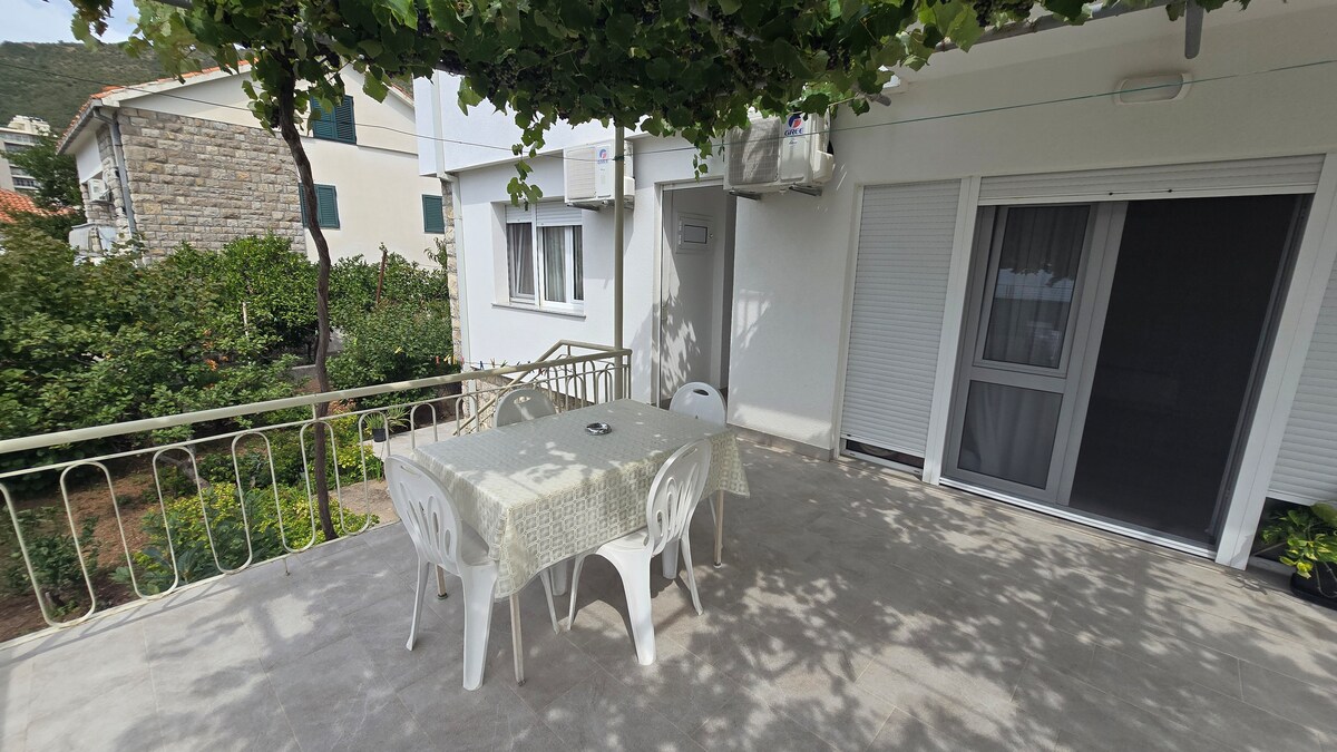 Discover your perfect retreat in Budva, relax in this bright and peaceful apartment. What you’ll love: • Private balcony with lush tree view • Modern kitchen with all essentials • Work desk area • High-speed Wi-Fi & smart TV • Morning coffee on the balcony while birds sing Comfort & quality: The apartment includes 1 bedroom, bathroom, kitchen and a cozy living area with natural light. Cleanliness and comfort are our top priority — freshly washed linens, towels, and a calm atmosphere await you.