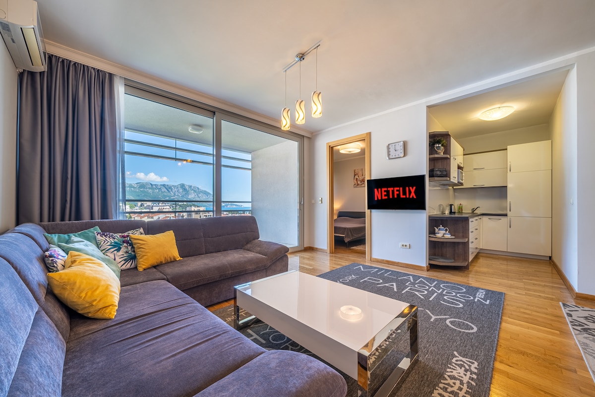 公寓「Budva」,可欣赏海景,带车库停车位