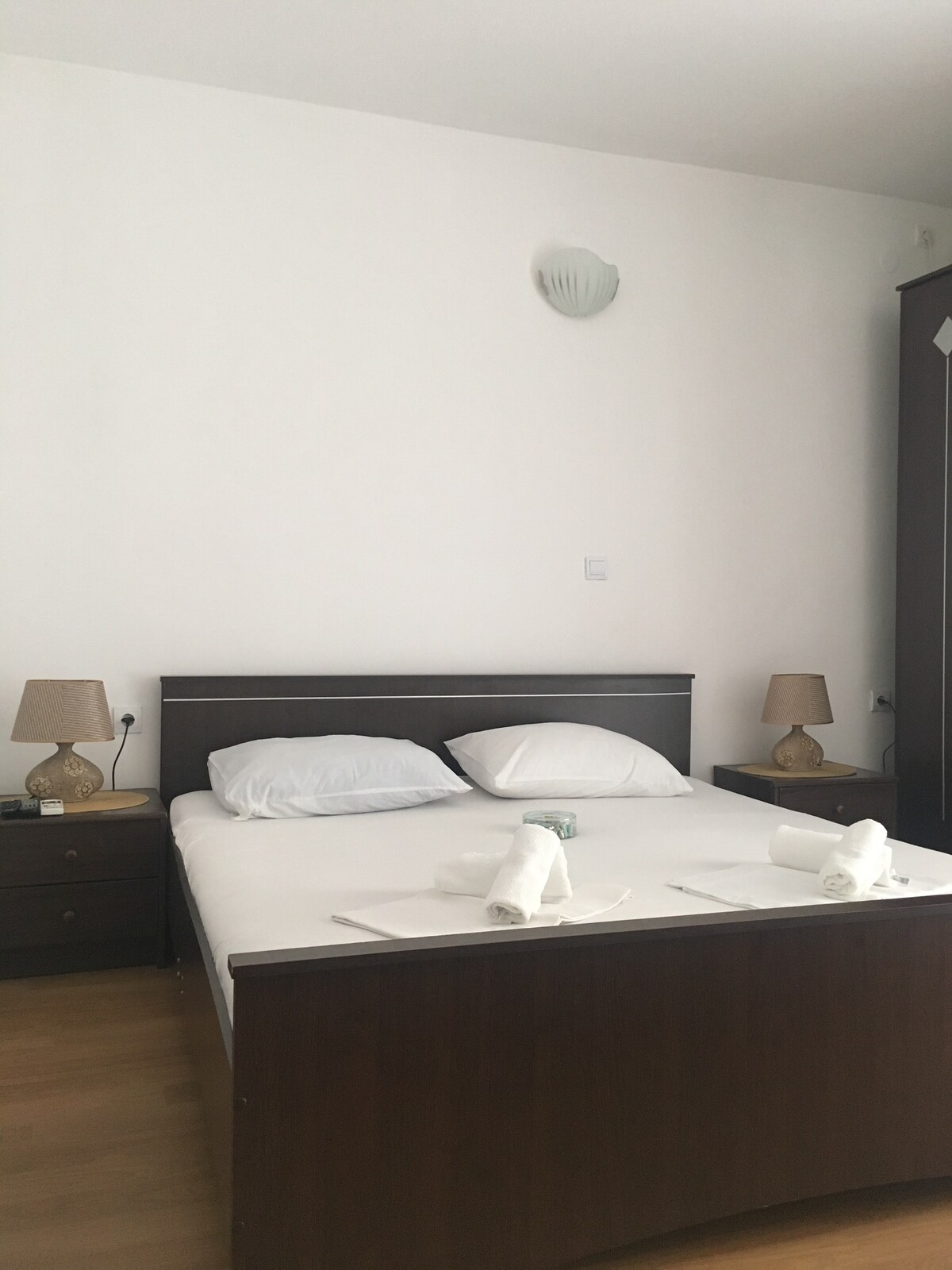 This suite is located in the centre of Budva. It only takes 5 min walk to the beach and 10 min away from the Old Town and bus station. In the area of 200m there are seveal supermarkets, cafes, restaurants, pharmacy, shopping mall and the main market. Within the apartment we offer you 2 bedrooms and bathroom–in the main bedroom there is double bed, equipped kitchen, dining table, TV, air conditioning and the second one is with two single beds and exits to the balcony. Free Wifi. Free parking.