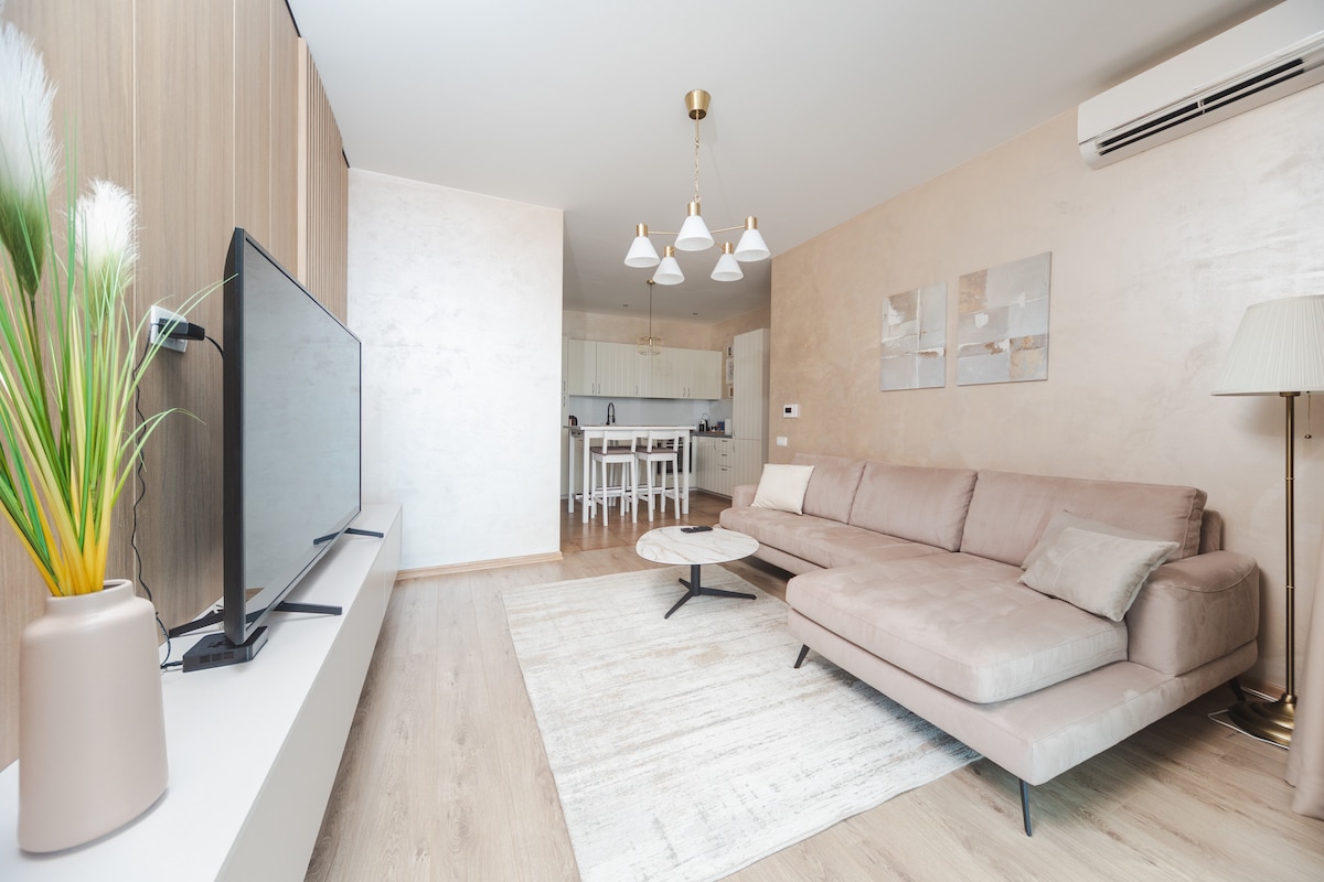 Have a working holiday in great style ideal to the digital nomad lifestyle. Our facilities will surprise you with elements of comfort making your getaway even more special. Sauna and steam bath are the perfect finish to a work-out. Workbench is provided, fast internet and sea view. A great promenade along the 10 km long sandy sea between Becici and Budva, only four minutes away by car. ✔ 50 sqm ✔ pool ✔ fireplace ✔ gym ✔ lounge+bbq area ✔ sauna (closed 3-22 Jan 2026) ✔ hammam ✔ parking (paid)