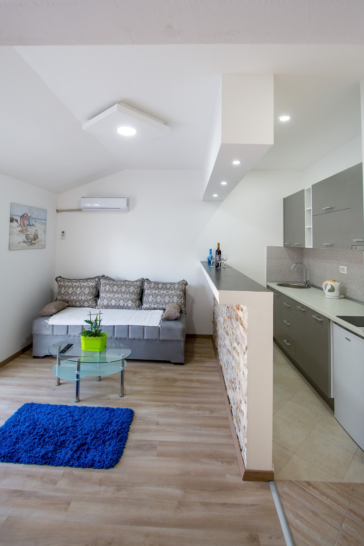 This 45 sq.m.apartment is wonderfully situated near Vista restaurant .If you like , jogging, walking, writting. Be inspired in Inspiration. Just above Old Town, 15 min walk, located in exclusive zone of Gospostina it's within walking distance to grocery stores, market, 4 beaches . A New restaurant has opened Vista Vidikovac just 2 doors from the ap. From terrace you'll have great, uninterrupted view of the sea all day 180 degrees. Free private parking in front of the entrance door.