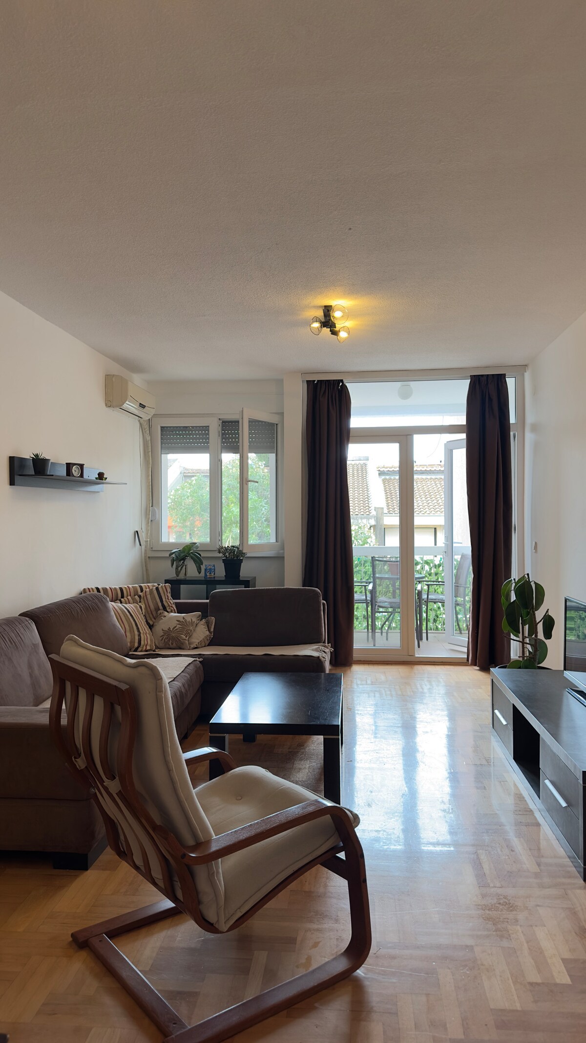 In this comfortable apartment for 4 , there are 1 living room(sofa bed), plus 1 bedroom (1 dozble bed) ,air condition, FREE WI FI, tv plazma with cabling, wardrobe. There is full equipped kitchen, so if you want to prepare our traditional food you have all the conditions. There is a nice bathroom and large balcony with view on garden,and chairs and table where you could drink coffee, have a lunch and enjoy!
