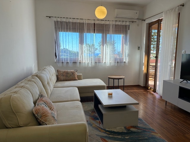 This apartment includes; 1 bedroom, 1 bathroom, kitchen with dining area and sofa that opens into a third bed, terrace with sea view. We are just 100m from a grocery store, bus stop, and restaurant/bar. Also 500m from the beach. **Please note the Touristic Tax is not included in our prices**