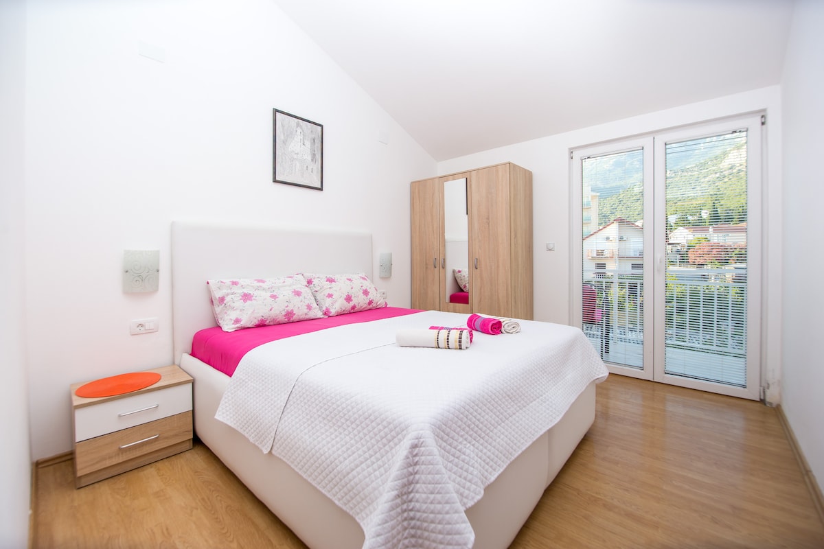 Cosy Villa in center. The room has 2 separate rooms and 1 double, 2 single beds. ✔AC/Heat ✔private bathroom ✔LCD TV ✔large terrace ✔hair dryer ✔fridge ✔safebox ✔shampo&showergel ✔slippers ✔kitchenette. Kitchen utensils will be provided by us. 3 minutes walking distance to 4 different supermarkets. 200 mt to famous Slovenska Beach, 350 mt to TQ Plaza well known meeting point at center and many restaurants. 1 km to Stari Grad. 500 meters to bus station. Just grab your bag and enjoy your vacation.