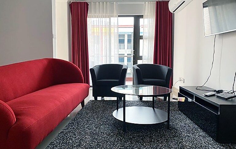 The beautifully decorated suite, with a zen vibe, three cozy double beds, comfortable sofas, fully equipped kitchen and bathroom. Size: 2694 sq ft, 3 Bedrooms, plus 1 Extra Smaller Bedroom, Kitchen, Palour (Max 6 Persons + 1 in the Extra Bdr)