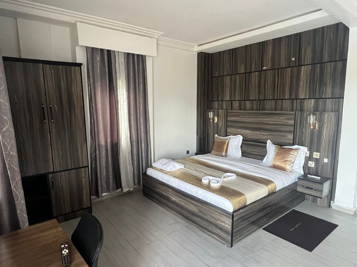 Indulge in luxury at our fully serviced condo in Buea: Step into a world of opulence and sophistication at our newly built property, meticulously designed and crafted in 2023. Our building features 24/7 security patrol, free daily room turnover, light cleaning and dishwashing, in-room service, and restaurant and lounge on premise with a lobby patio. Hakeem's Suites has a total of 18 exclusive units, each exuding a unique design and style.