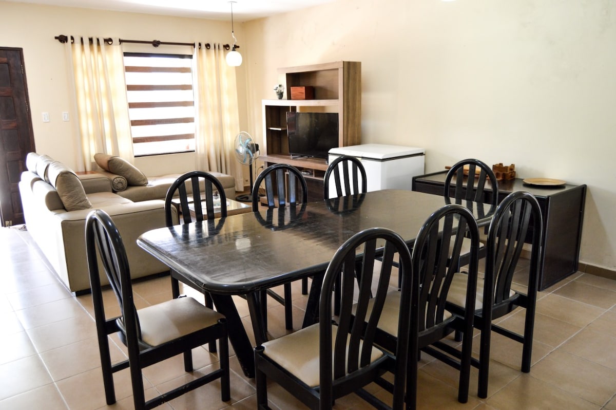 Alberga tu familia en el fantástico lugar con muchas zonas para divertirse. Quedaran recuerdos increibles en este sitio confortable sea con A/C o la frescura natural de la casa en medio del gran jardin con plantas ornamentales, frutales, florales que cobijan y alimentan a pajaros, ardillas, mariposas y Angeles ! Aquí a prepararse desayuno, refrigerio, almuerzo, parrilla, merienda, cena, jugos, sandwich, revueltos, omelet, etc ! En un pueblo ecoturistico con restaurants locales e internacional.