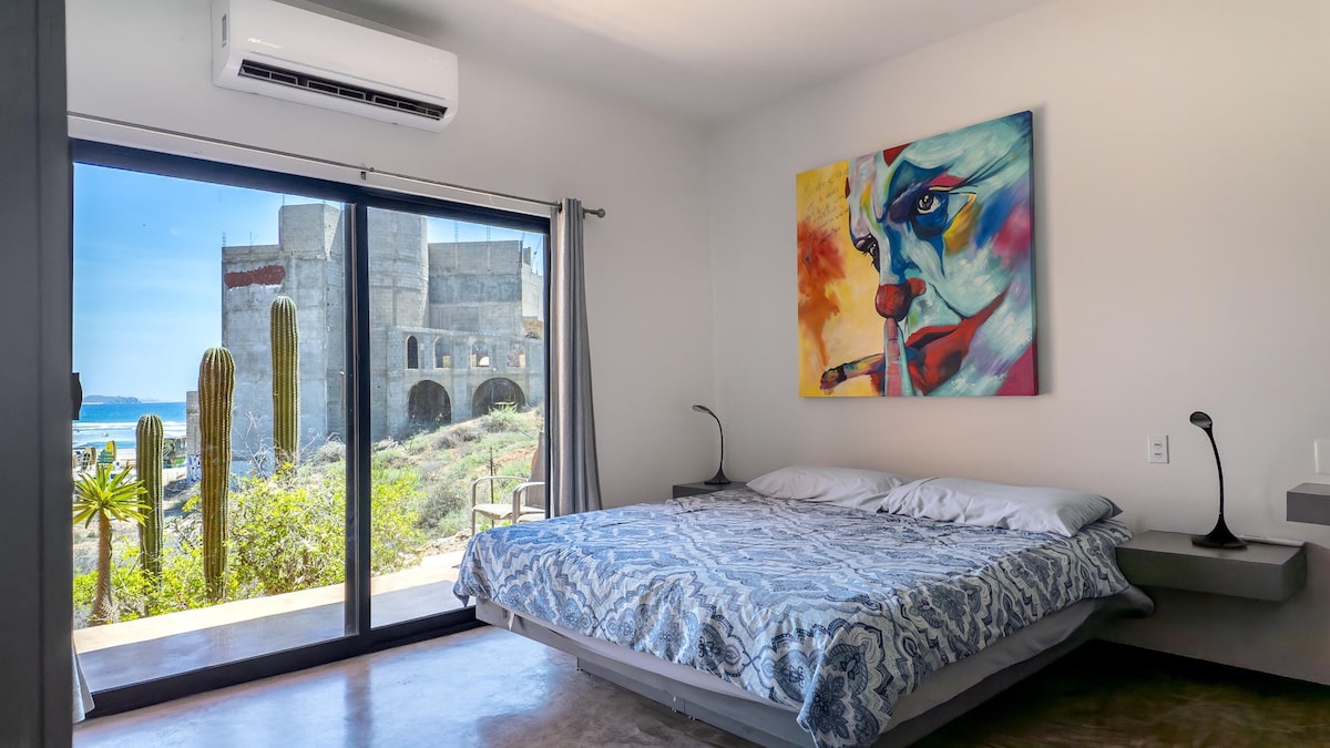 It doesn´t get any closer to Playa Los Cerritos! Our condo is a spacious suite with a beachfront terrace to check out the surf or enjoy one of the most beautiful sunset in Baja. The space has everything you need to live on the beach: - A master bedroom and two bathrooms. - One King size bed for your comfort. - A couch in the living room for the little one or the thrifty friend that you love. - A Kitchen to prepare the catch of the day. There are also 2ACs (in the living room and the bedroom)