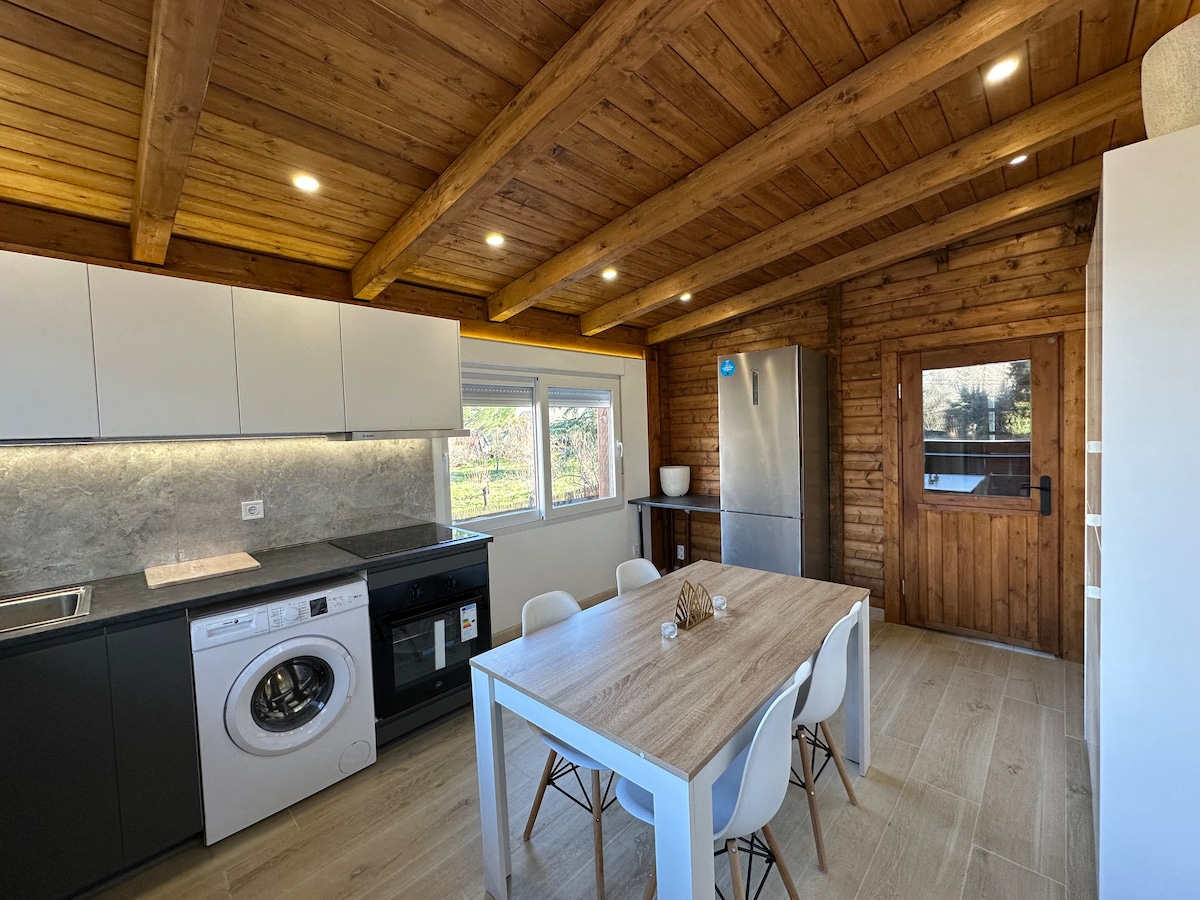 Aislamiento, paz, y disfrute en estado puro. Una experiencia única, una Magica sensación de tener tu propia casa de madera en medio de la montaña. Casa de madera en encinar privado (para vosotros) de 3000m2 dentro de una urb con seguridad 24h, piscinas, rutas de senderismo, campos de golf, hípica, restaurantes, supermercado, lago con actividades acuáticas y spa. Cada estacion brinda sus posibilidades,desde su acogedora chimenea hasta sus barbacoas, pasando por una primavera llena de flores.