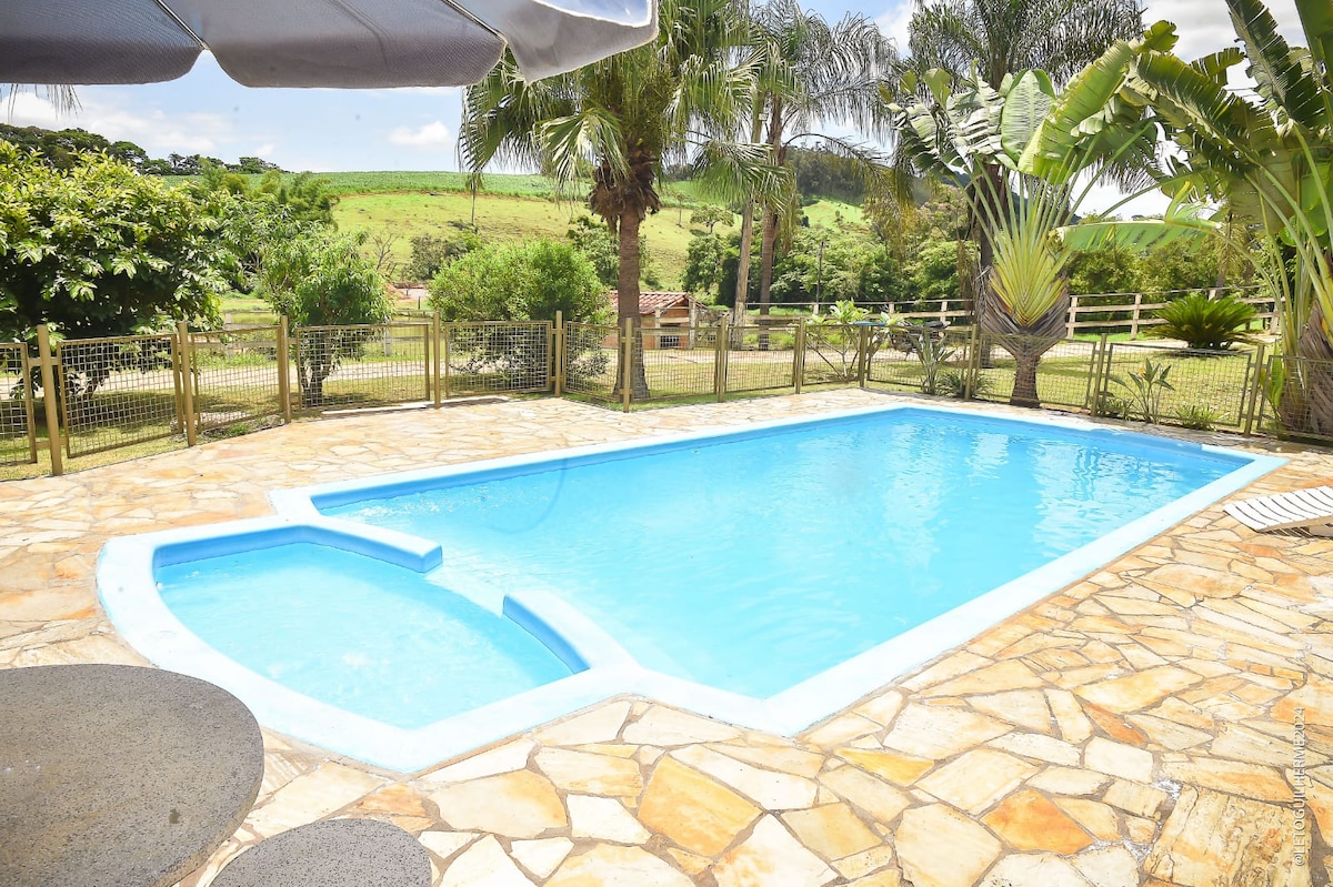 Leve toda a família e amigos a este ótimo lugar com muito espaço para se divertir, cozinhar e descansar. Piscina para o dia, fogueira para a noite e uma cozinha rústica para muitas mineiridades. Localizado na beira da estrada, a 15km de Bueno Brandão, a 5km de Inconfidentes e a 15km de Ouro Fino.