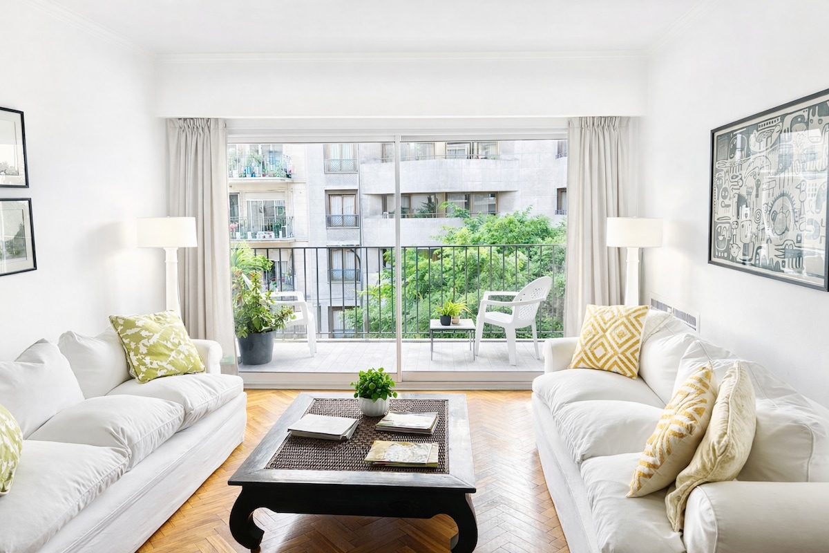 Wake up with the beautiful green view of the trees in the background, in this warm and comfortable apartment in the lively neighborhood of Palermo, surrounded by museums, shops, supermarkets and plenty of nice restaurants/bars to have a drink at sunset...With an unbeatable location it is an excellent starting point to visit the different neighborhoods of Buenos Aires. Building with security 24h/day. Internet speed 100 Mbps The apartment is cleaned with extra precautions and sanitized thoroughly. Apartamento de 50 m2 con vista verde, con balcón, en el corazón de Palermo. Tiene 1 dormitorio con cama matrimonial y 1 sillón cama de 1 plaza en el living. Black out en dormitorio y living. Posee caja de seguridad. Excelente ducha. Equipado con Internet Wi-Fi, posee 2 TV : una de 42" en el living y otra de 32" en la habitación con Netflix, 2 aires acondicionados, calefacción, microondas, tostadora, 1 gran heladera, cafetera y termo eléctrico, tender extensible para el secado de la ropa, plancha y tabla de planchar. El departamento ha sido reformado en mayo 2016, esto incluye pisos nuevos, colchón nuevo de alta calidad así como ropa blanca. En diciembre 2016 se colocó una cocina nueva, eléctrica. Me encuentro disponible en el celular para cualquier solicitud, consulta o recomendaciones sobre la ciudad de Buenos Aires o sobre el departamento. Apartment located in a safe and lively area, with a fantastic location that includes green spaces and an important gastronomic and cultural center very much appreciated of the city. Near the main cultural and touristic attractions. Steps from all means of public transport. Walking distance to Malba Museum. Only 10' from the Jorge Newbery National Airport. Ubicación muy práctica para moverse en BA con todos los medios de transporte públicos a 3 cuadras en Av.Las Heras y a 1 cuadra en Av.Libertador. Personas adicionales sin cargo. Se hace una limpieza general por semana con cambio de ropa blanca sin cargo. El departamento tiene puerta blindada y abajo en la recepción hay guardias de seguridad las 24h. Posee caja de seguridad.