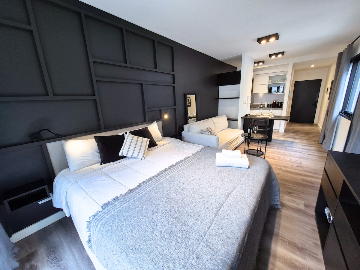 Minimalistic studio located in a hotel flat will offer you the best experience. Location: City center next to touristic points like Puerto Madero, La Boca, Casa Rosada, Palermo. Mobility: Close to bus stops and subways, free bikes in the entry. Views: Woman's bridge and river plate, also you'll see the sunrise and sunset. Amenities: Wi-Fi (Private connection) Meetings room and a small cinema Sauna (dry and wet), Jacuzzi and a massage table (separate service) Complete Gym Swimming pool