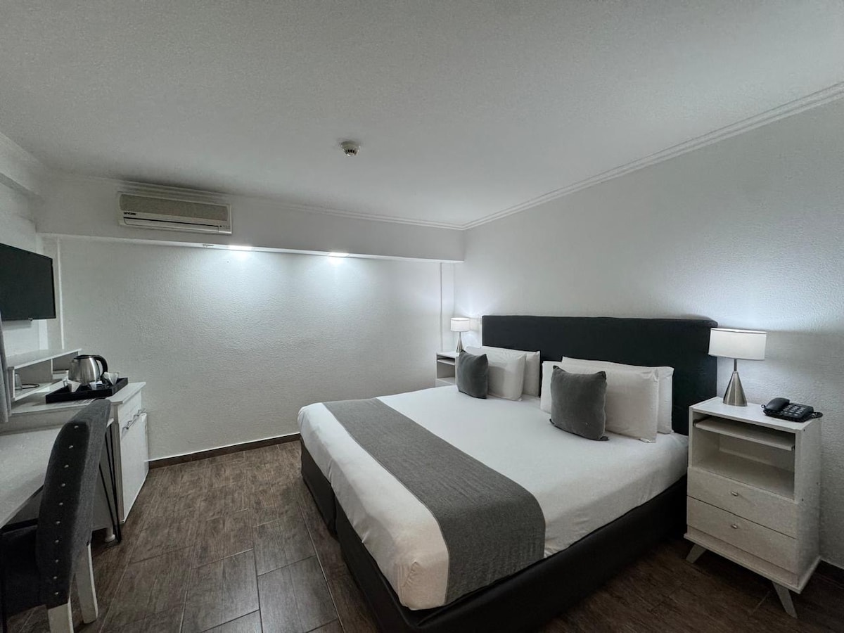 Unidad de 56 m² con palier privado y excelente iluminación natural. Aislación térmica y acústica. Cuenta con cama king/twin size, climatización, Smart TV 43, internet de alta velocidad (fibra óptica 50 Mb), living con sillón cama y mesa, escritorio con 4 sillas y black out. Baño con hidromasaje, caja de seguridad, frigobar, microondas, teléfono, pava eléctrica y equipo de mate. Seguridad y front desk las 24hrs, Limpieza, Room Service, Bar, Confiteria, Zona de trabajo y salon de eventos.