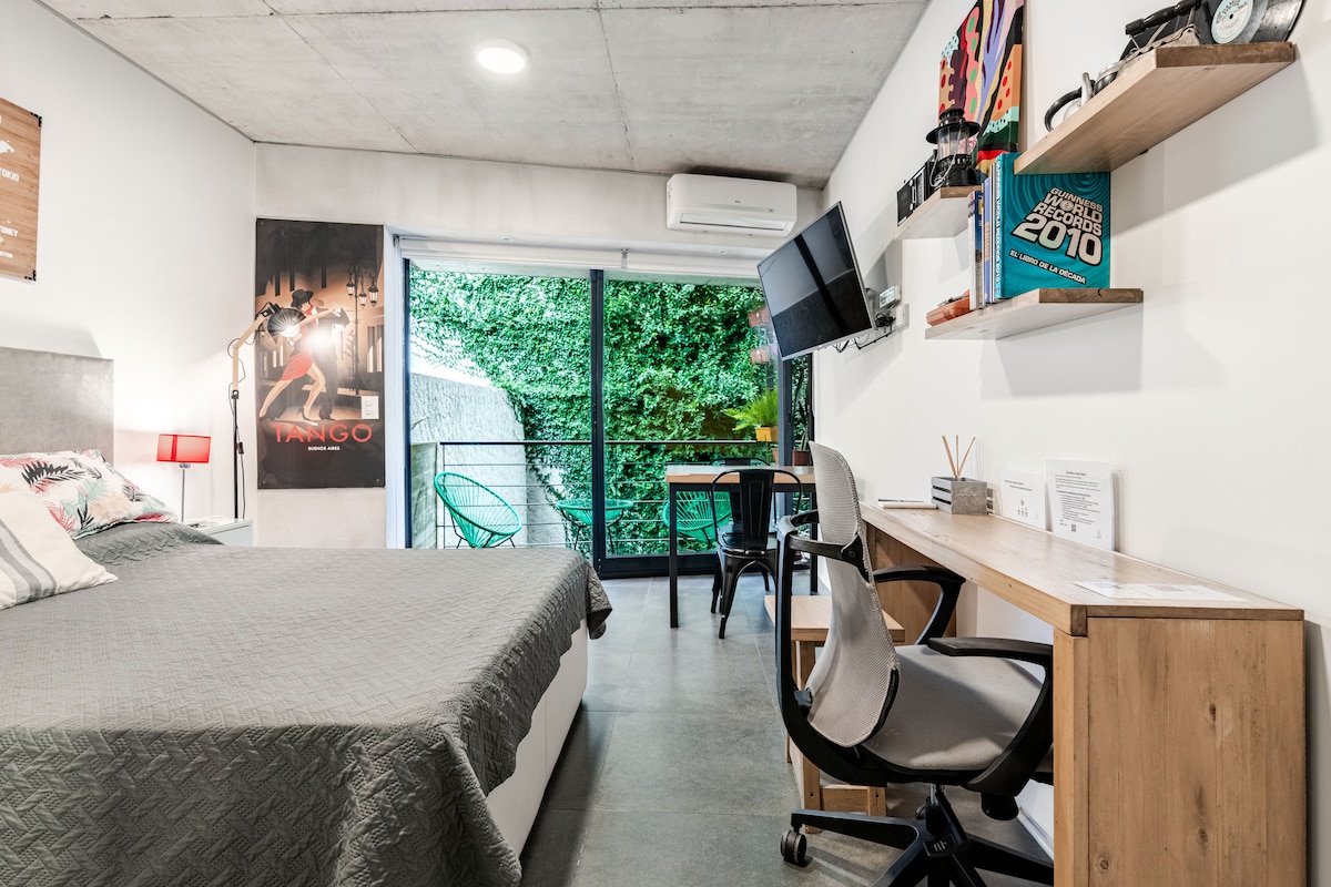 Stylish studio in Palermo's heart. Experience the best of Palermo in our brand stylish studio! Unwind amidst modern furniture and relish the center-of-it-all location. Enjoy the luxury building with pool, sauna, sum, laundry and garden. Explore trendy shops, art galleries and dine at diverse eateries. Ideal for solo adventurers, couples or business travelers seeking a comfortable and memorable stay in Buenos Aires vibrant heart. Book now and indulge in the allure of Palermo!