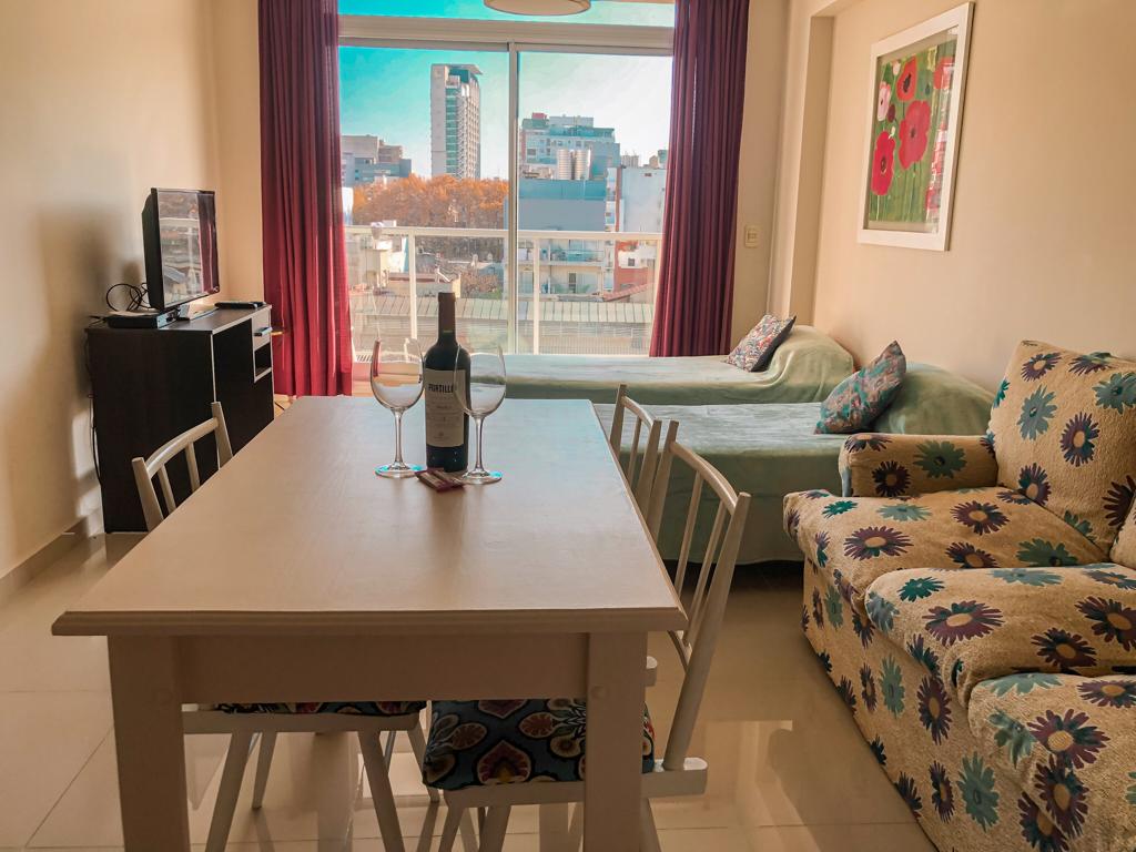 Spacious and bright apartment with everything you need to make your perfect stay. Located in the heart of Palermo, between Palermo Hollywood and Soho, in the midst of the best shops, restaurants, nightlife and cultural activities. The apartment has a comfortable and wide bed, a bathroom with bathtub and a private terrace, it also has black-out curtains. The building has a swimming pool (not heated), solarium, gym and laundry.