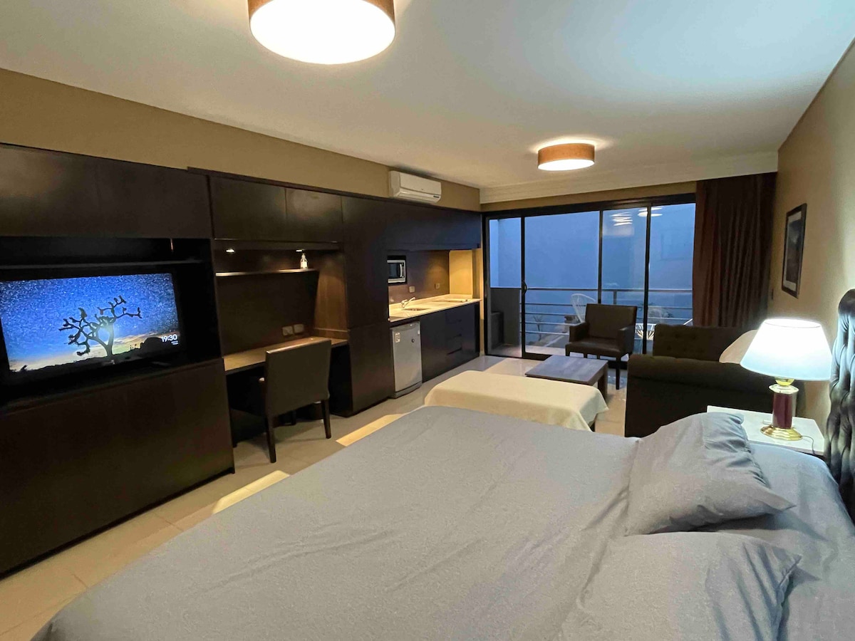 Alojamiento único y tranquilo en edificio de estilo francés del siglo pasado. Este apartamento comprende 40 metros cuadrados, posee una cama doble, un sillón, mesa con cuatro sillas y cocina completa. Además posee una piscina, spa y un jardín de relax. Además, hay una cafetería en la planta baja donde se puede trabajar y desayunar a lo largo del día. Asimismo, hay un tótem de seguridad las 24hs. en el ingreso. Las zonas comunes son amplias, luminosas y confortables.